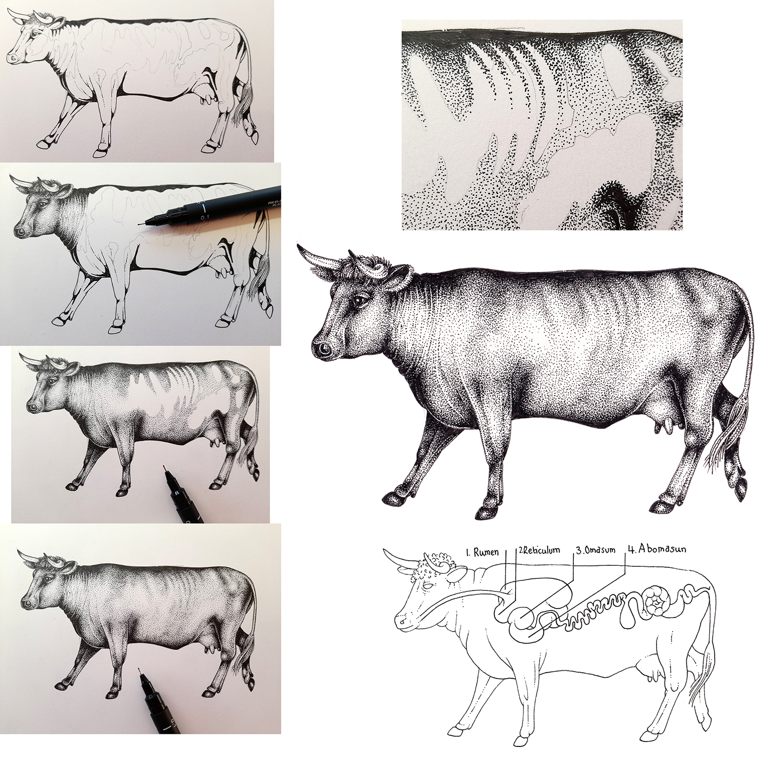 3D visualization of a cow s stomach with four chambers, Bovine ...