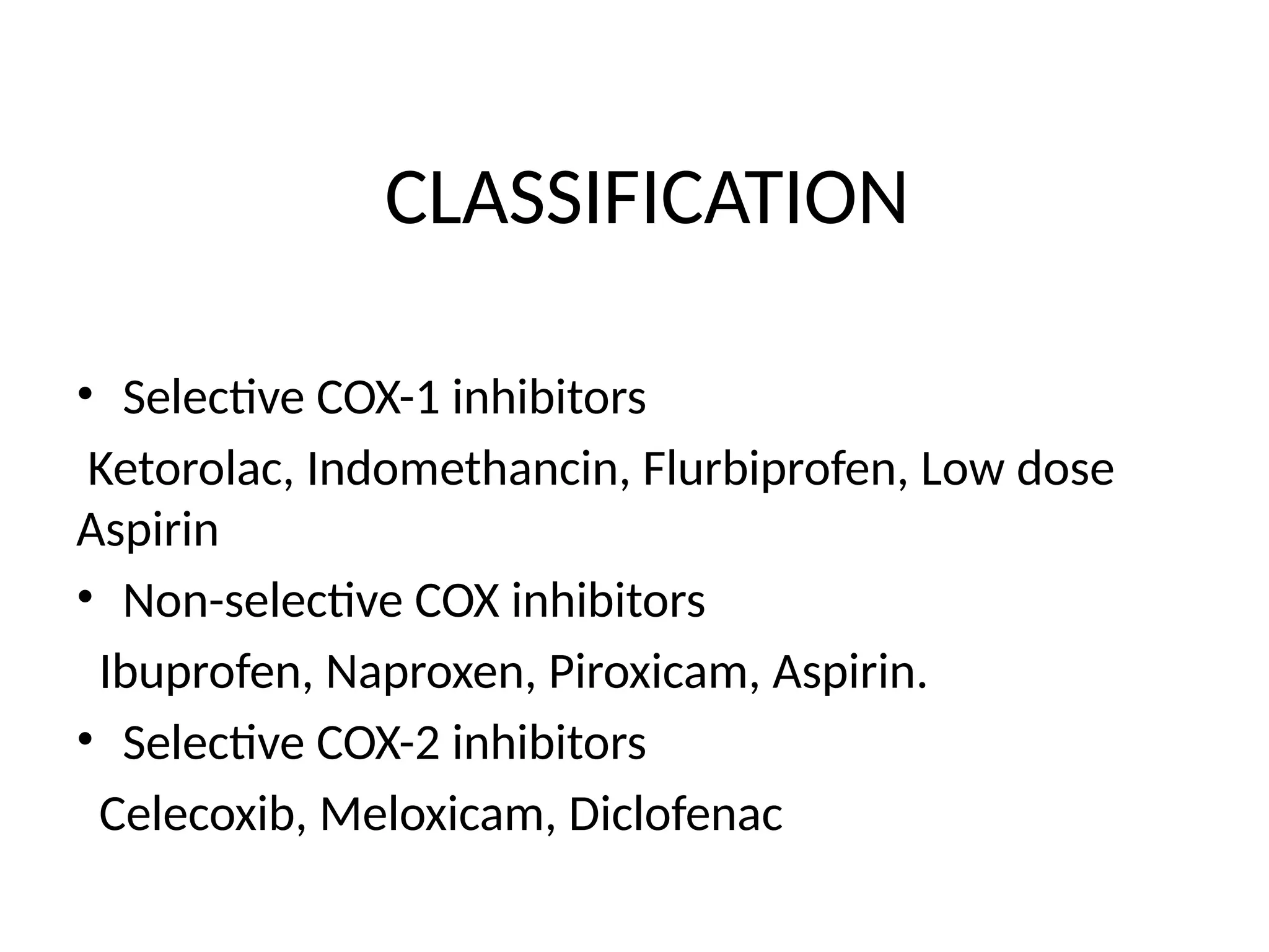 NSAID classification: COX selectivity, chemical structure, duration ...
