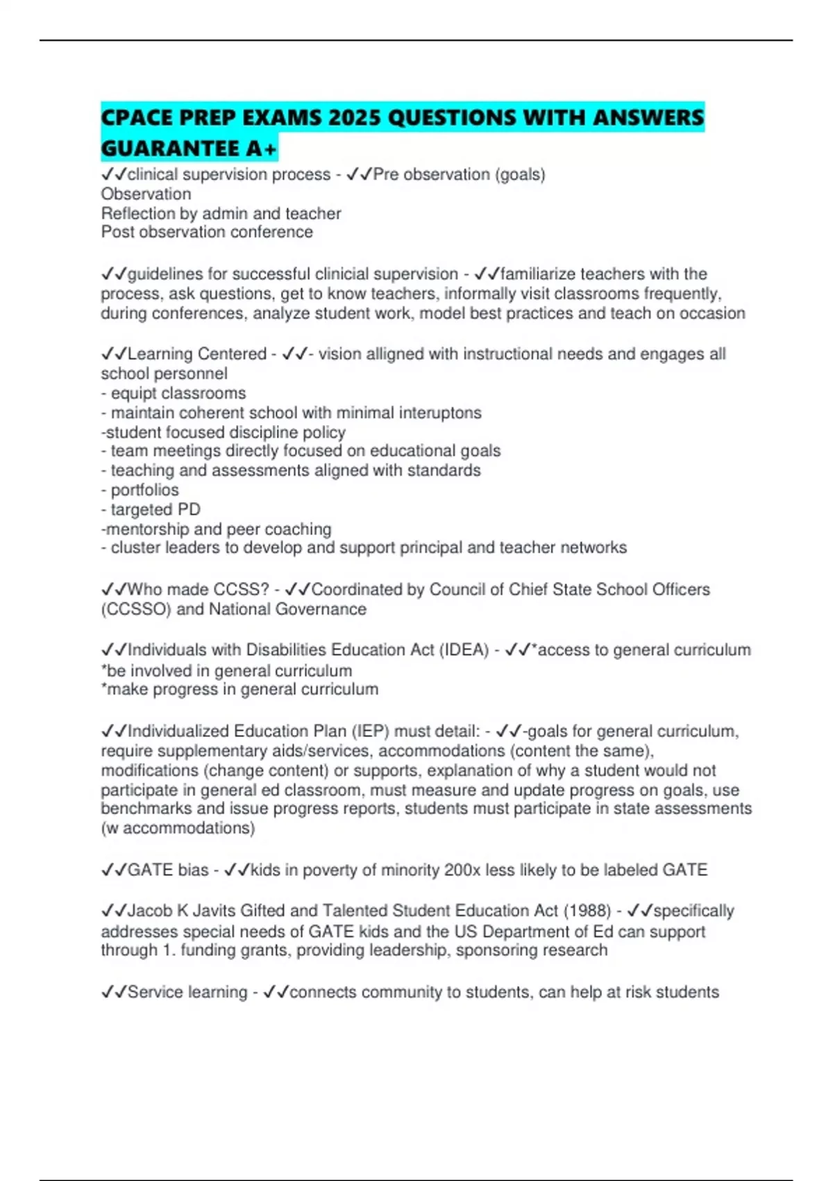 Instructional Leadership: CPACE Questions and Answers | Exams ...
