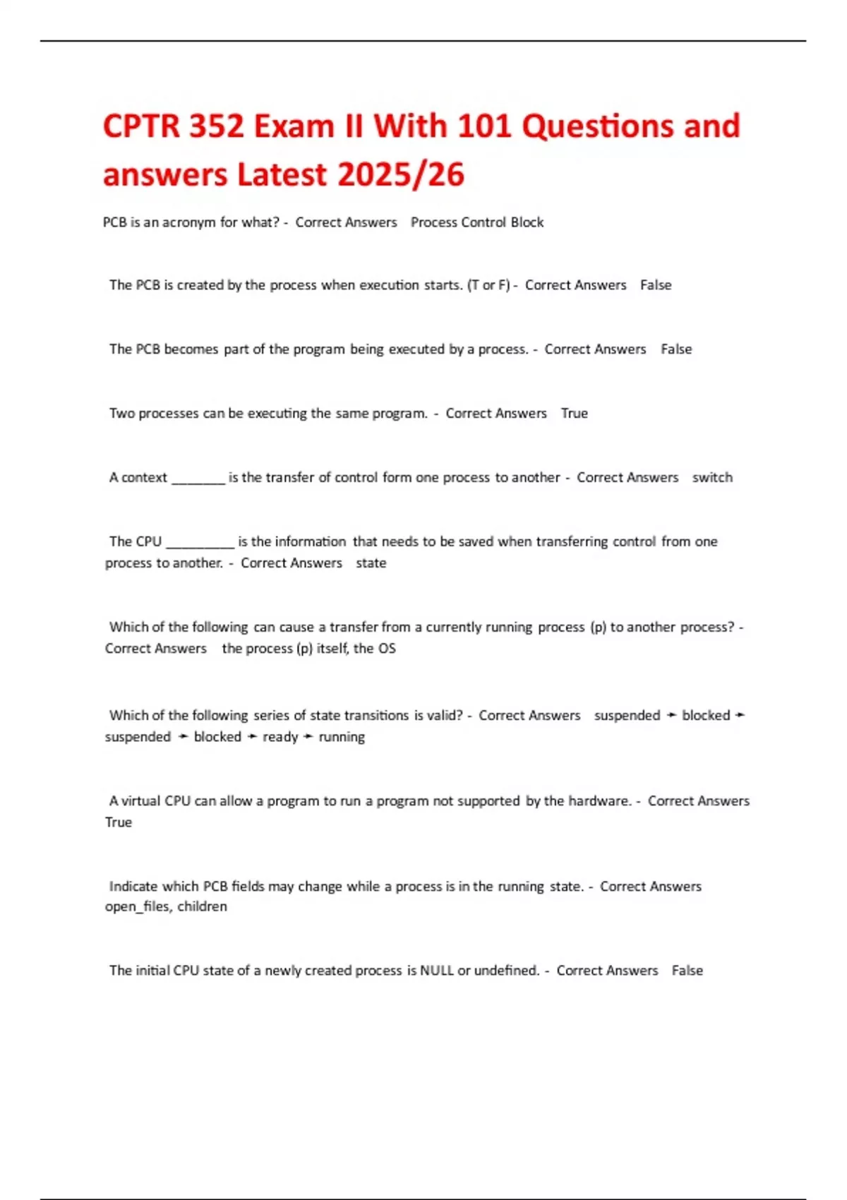 CPTR 352 Exam II With 101 Questions and answers Latest 2025/26 - CPTR ...