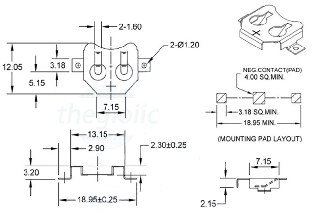 CCR-1200 Đế Pin Inox CR1220 CR1225 Dán SMD