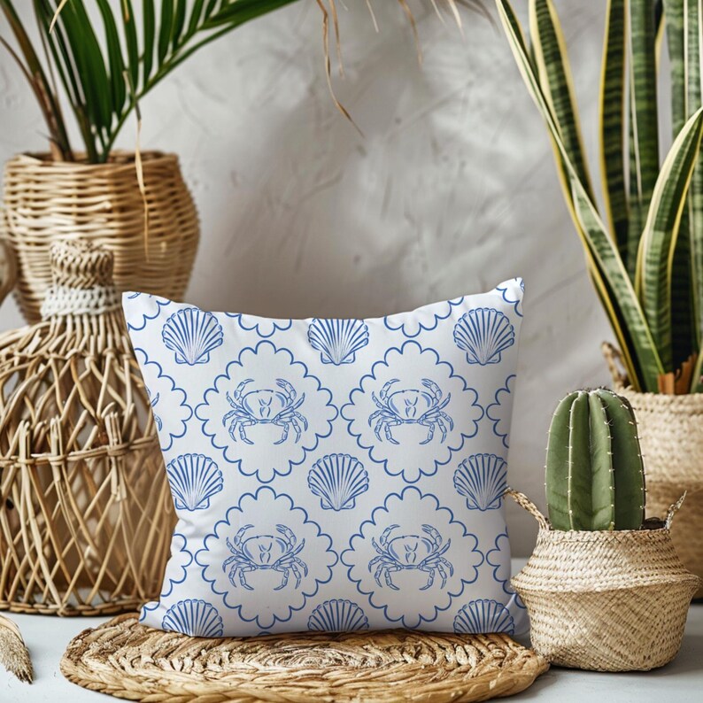 Blue Crab and Seashell Line Art Pattern - Hand Drawn PNG File - Summer ...