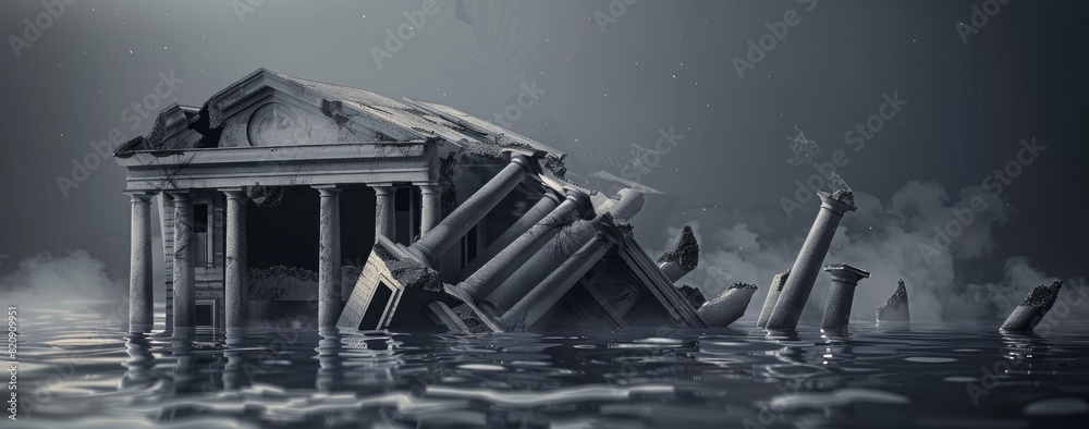 Bank Building Collapse Depiction Bankruptcy Financial Failures and ...