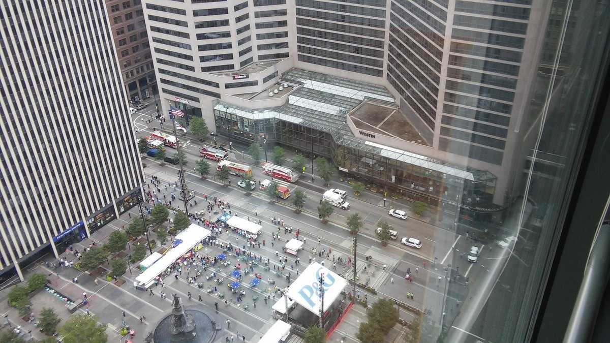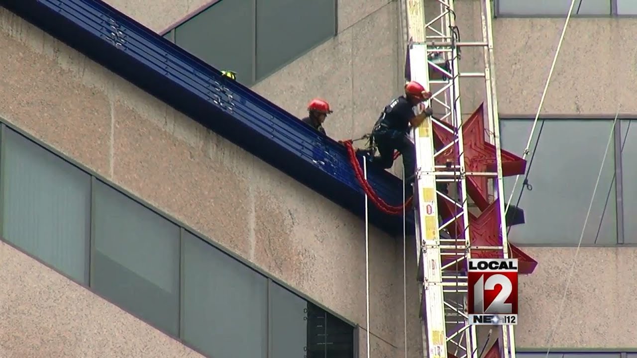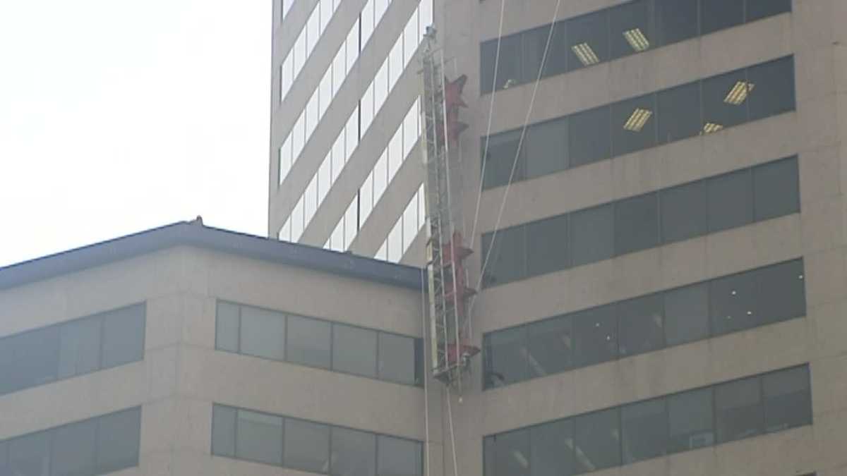 Scaffolding breaks loose from U.S. Bank building downtown - YouTube
