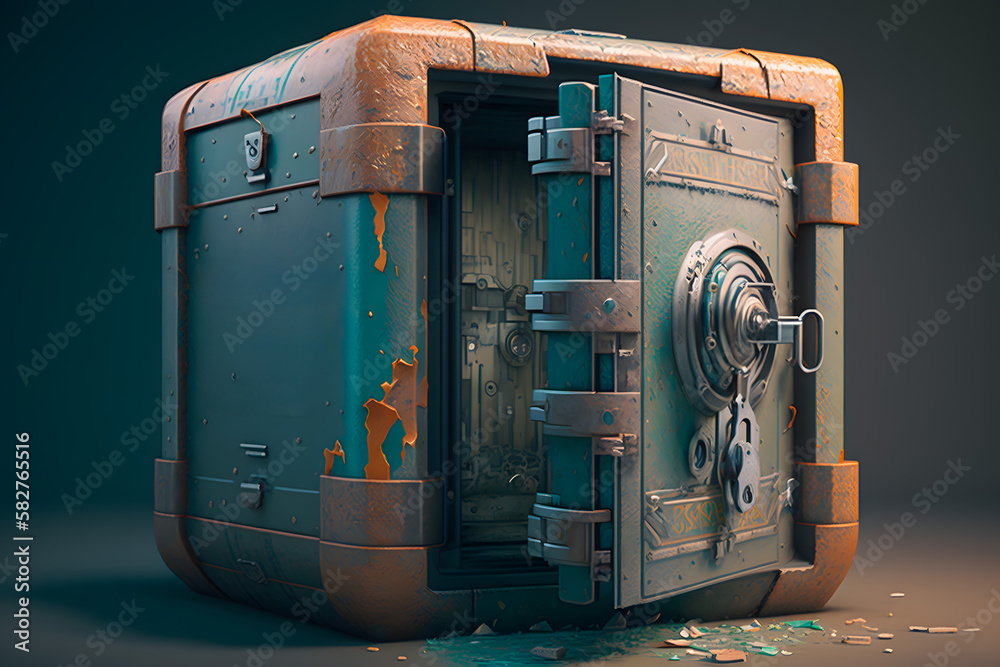 Opened Bank vault door, a large safe with a crack cracked open and ...