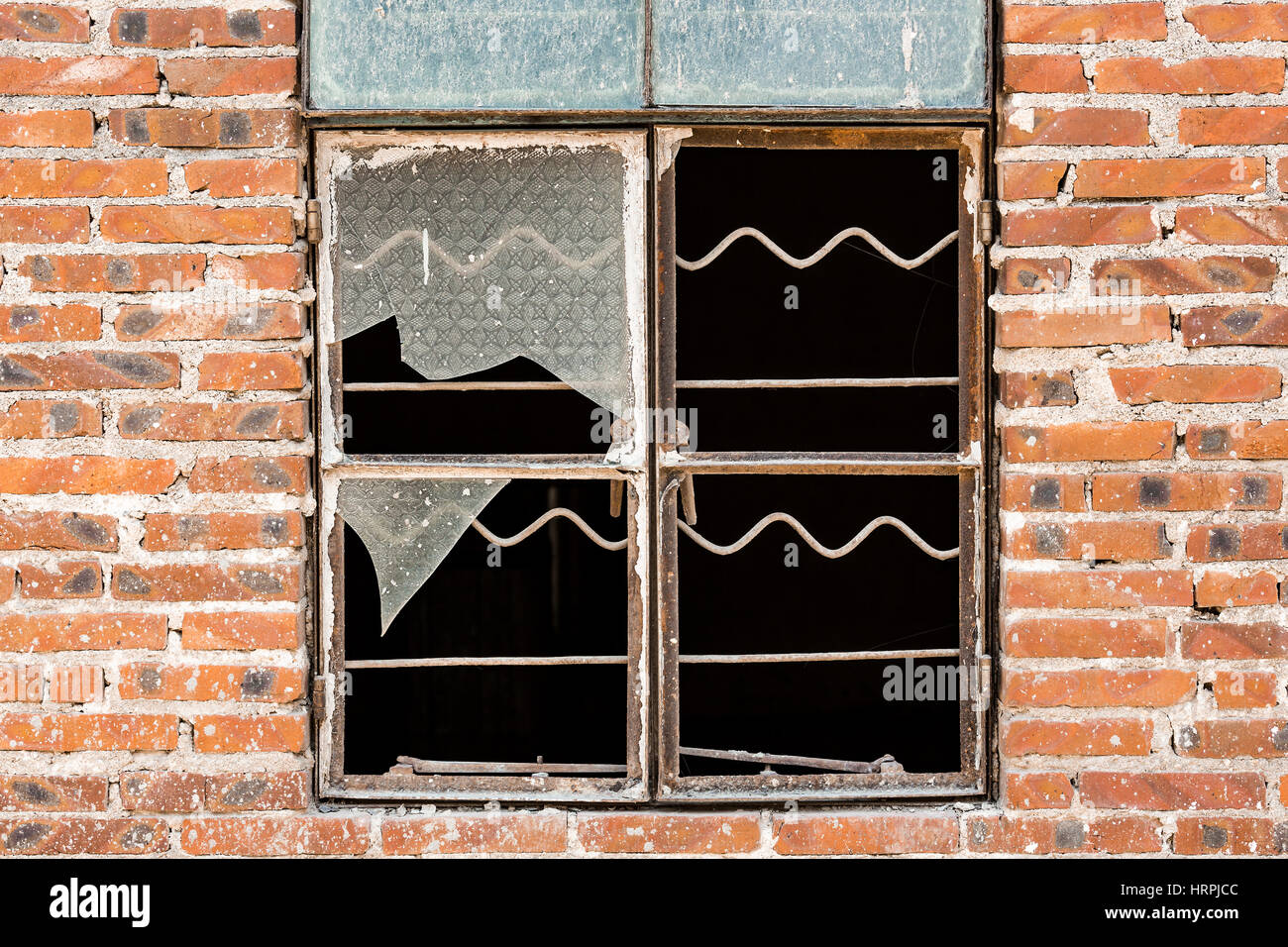 Broken window on a brick wall Stock Photo - Alamy