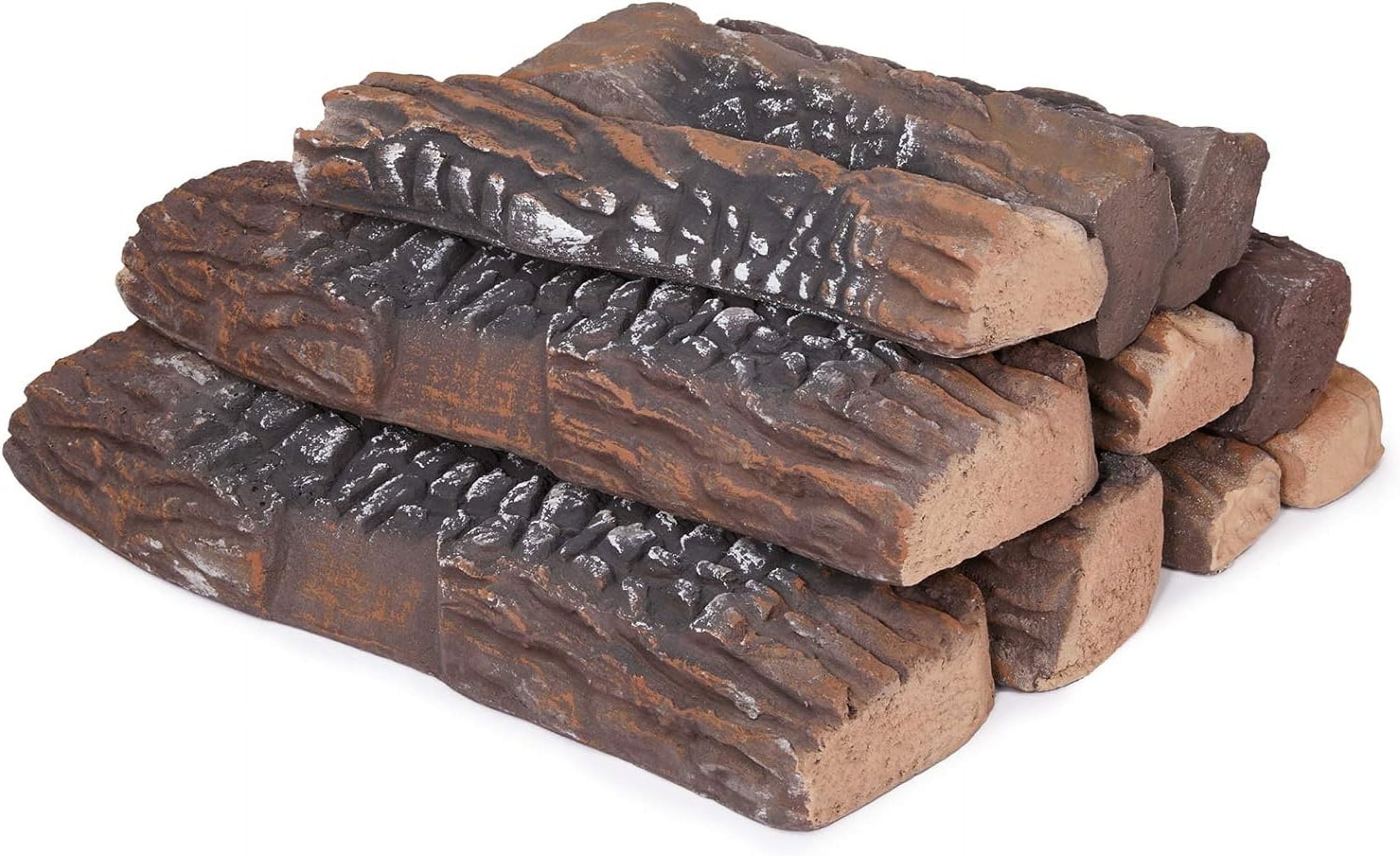 KFFKFF 10 Piece Ceramic Fireplace Logs, Durable Decorative Logs for Gas ...