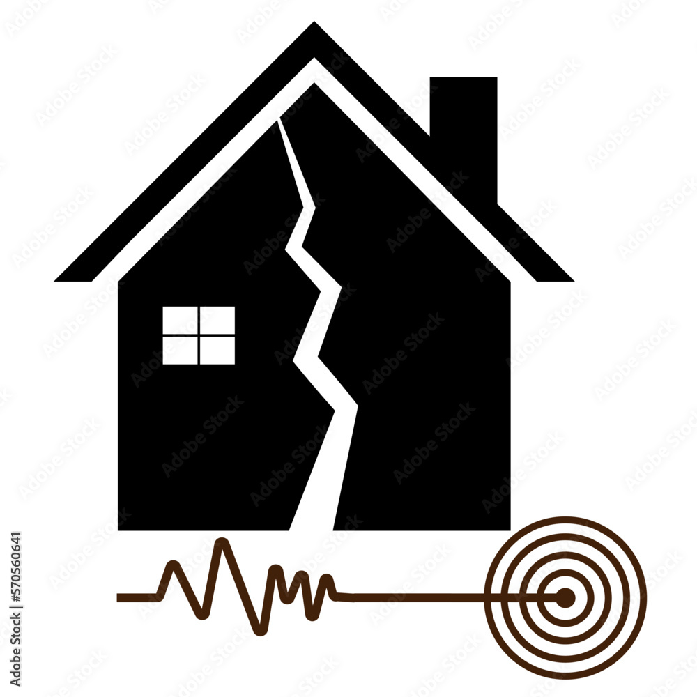 Stock-Vektorgrafik „Earthquake icon. Broken house after earthquake ...