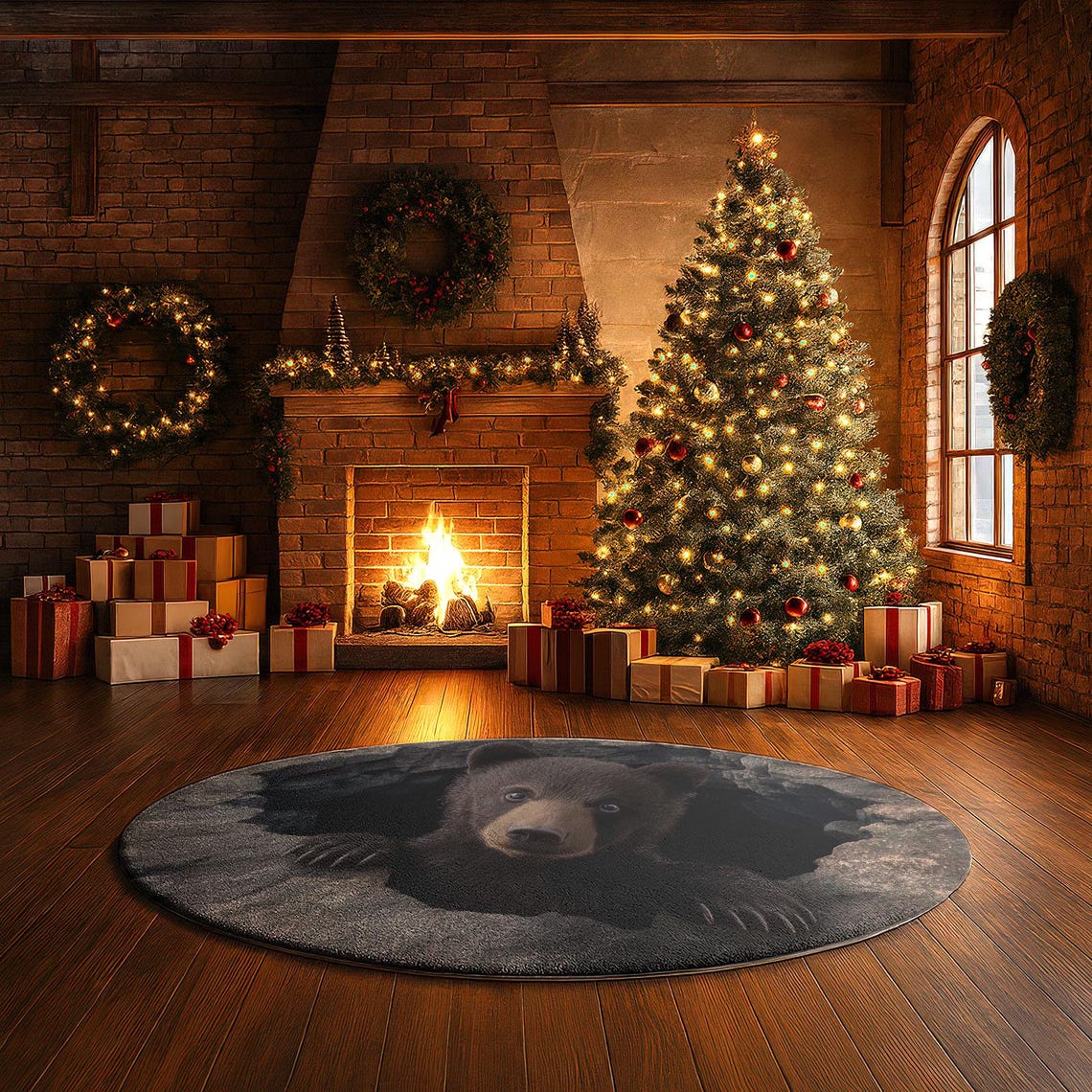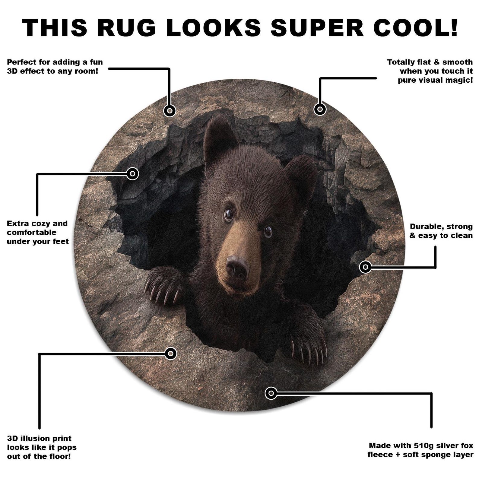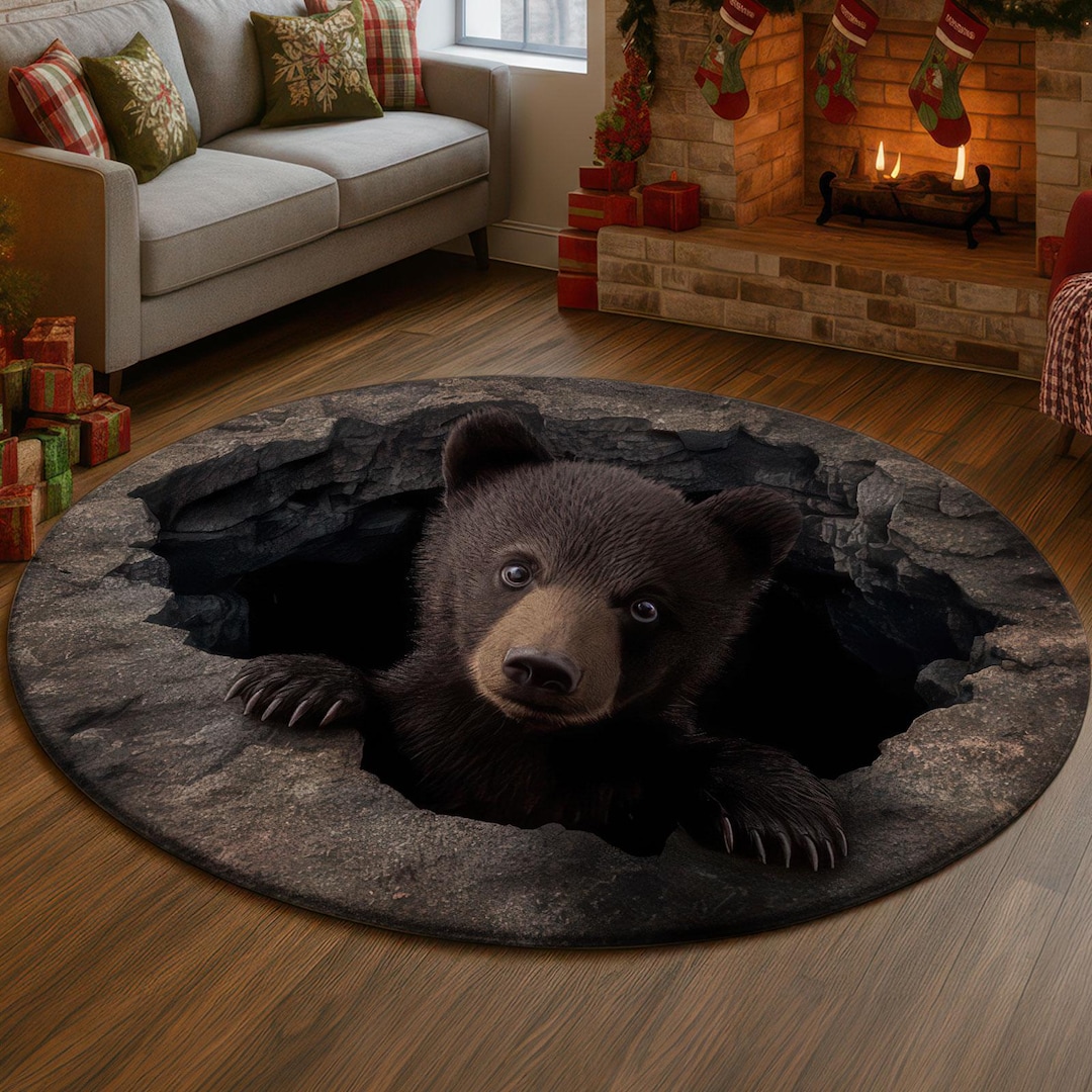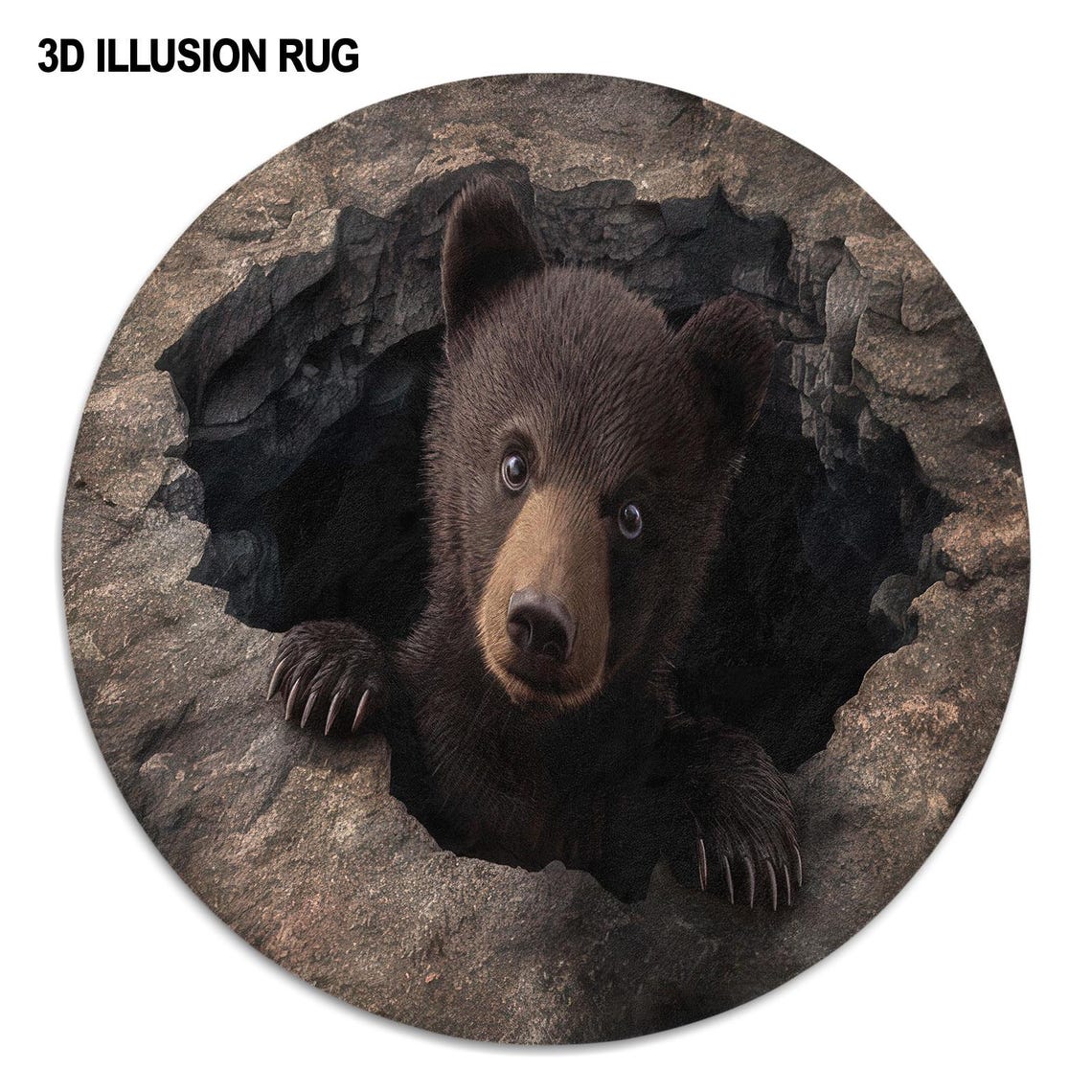 3D Black Bear Cub Hole Rug, Cute Baby Animal Carpet, Gray Rock Cracked ...