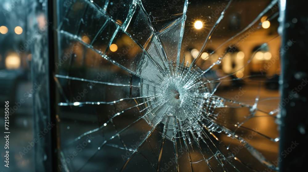 A cracked window with a broken glass that has a cracked surface ...