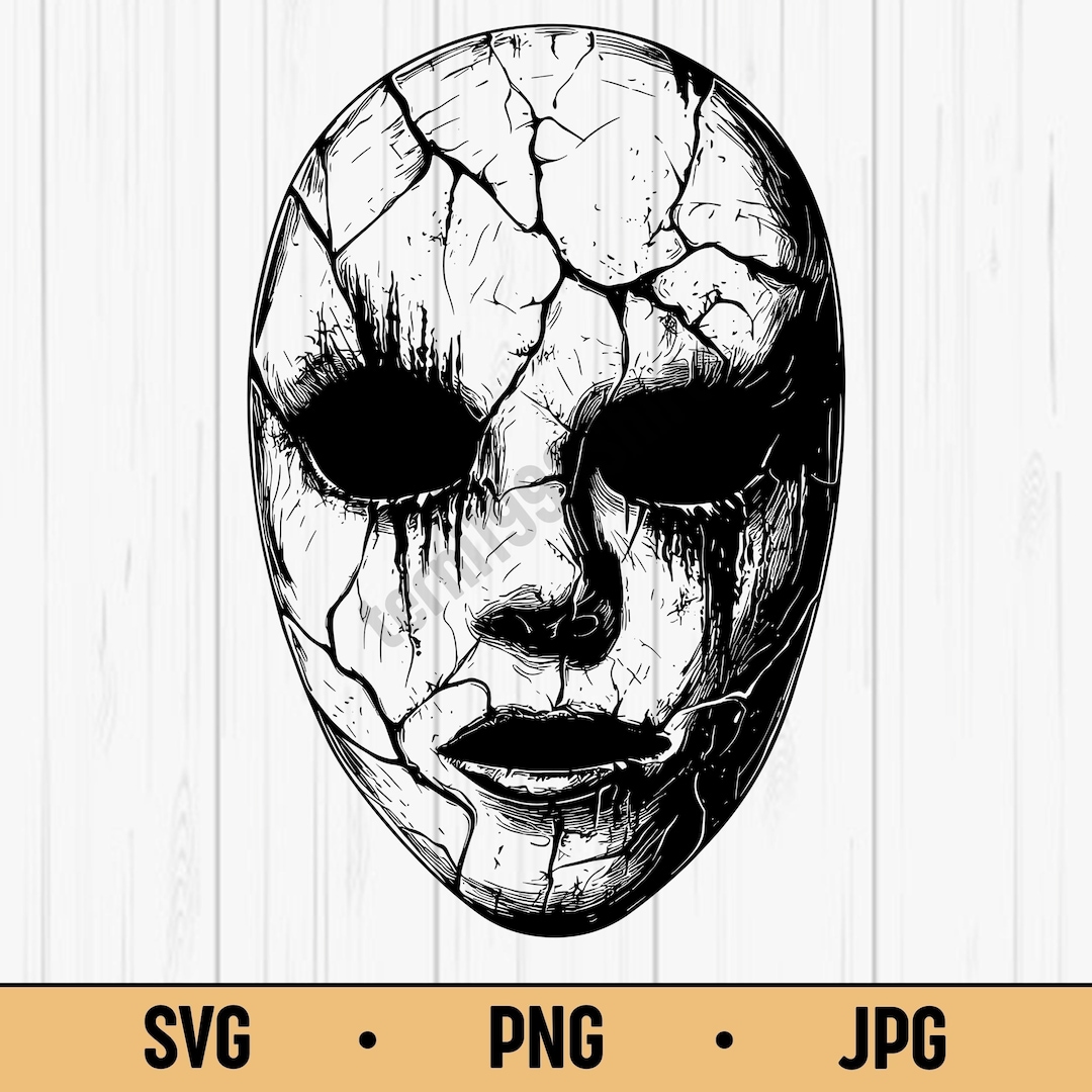 Cracked Horror Mask Sublimation SVG PNG JPG – Creepy Face Mask Vector ...