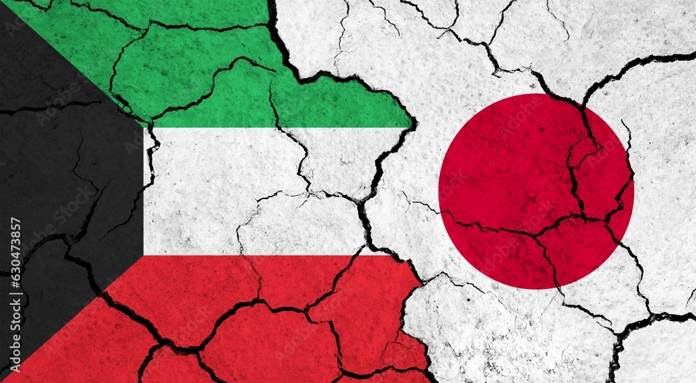 Flags of Kuwait and Japan on cracked surface - politics, relationship ...