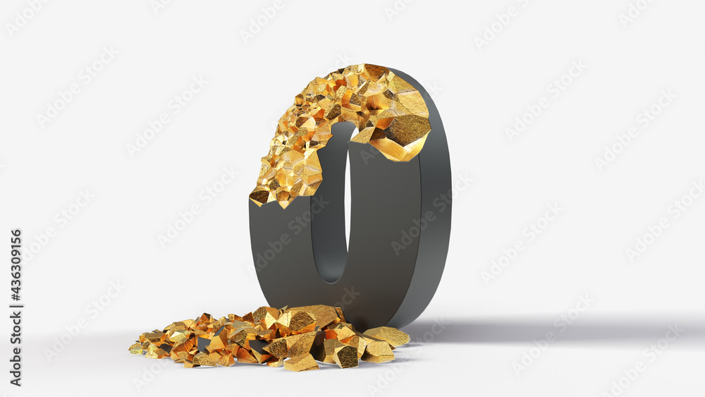 damaged black number 0 reveals gold inside. 3d illustration, suitable ...
