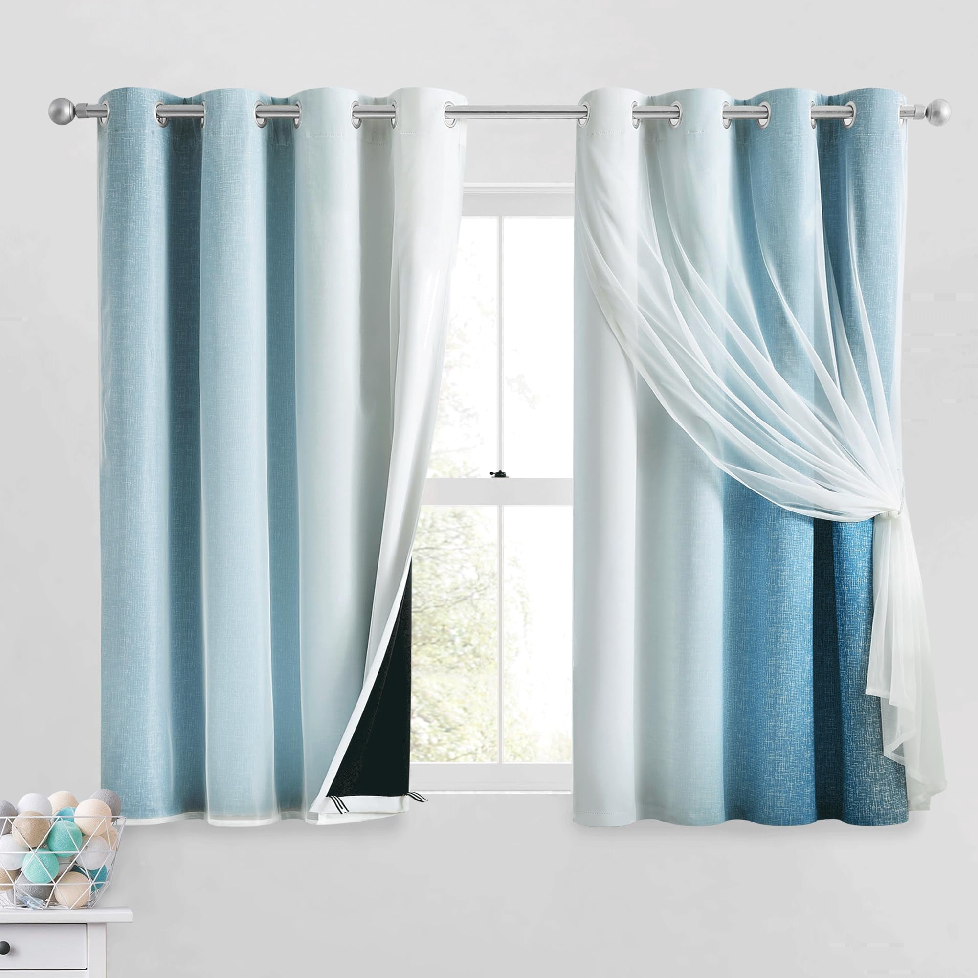 100% Blackout Curtains with Sheer Overlay Mix and Match Double Layer ...