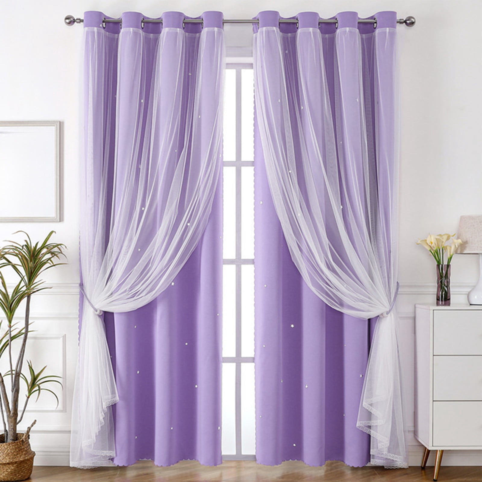 Blackout Curtains with Sheer Star Lace Overlay, Double Layer Thermal ...