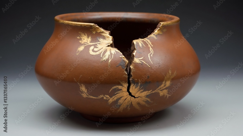 Artistic restoration of a cracked clay pot showcasing traditional ...