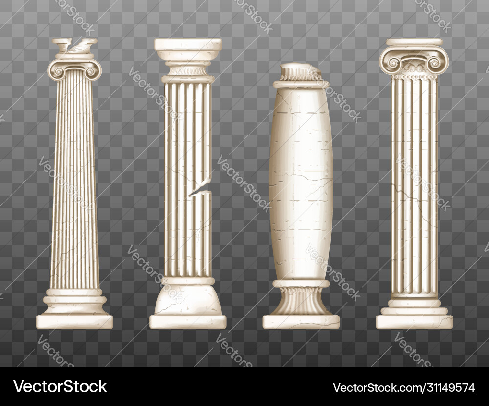 Marble ancient pillar set, isolated vector roman stone column ruin ...