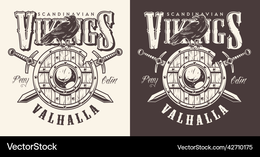 Raven seat on cracked shield Royalty Free Vector Image
