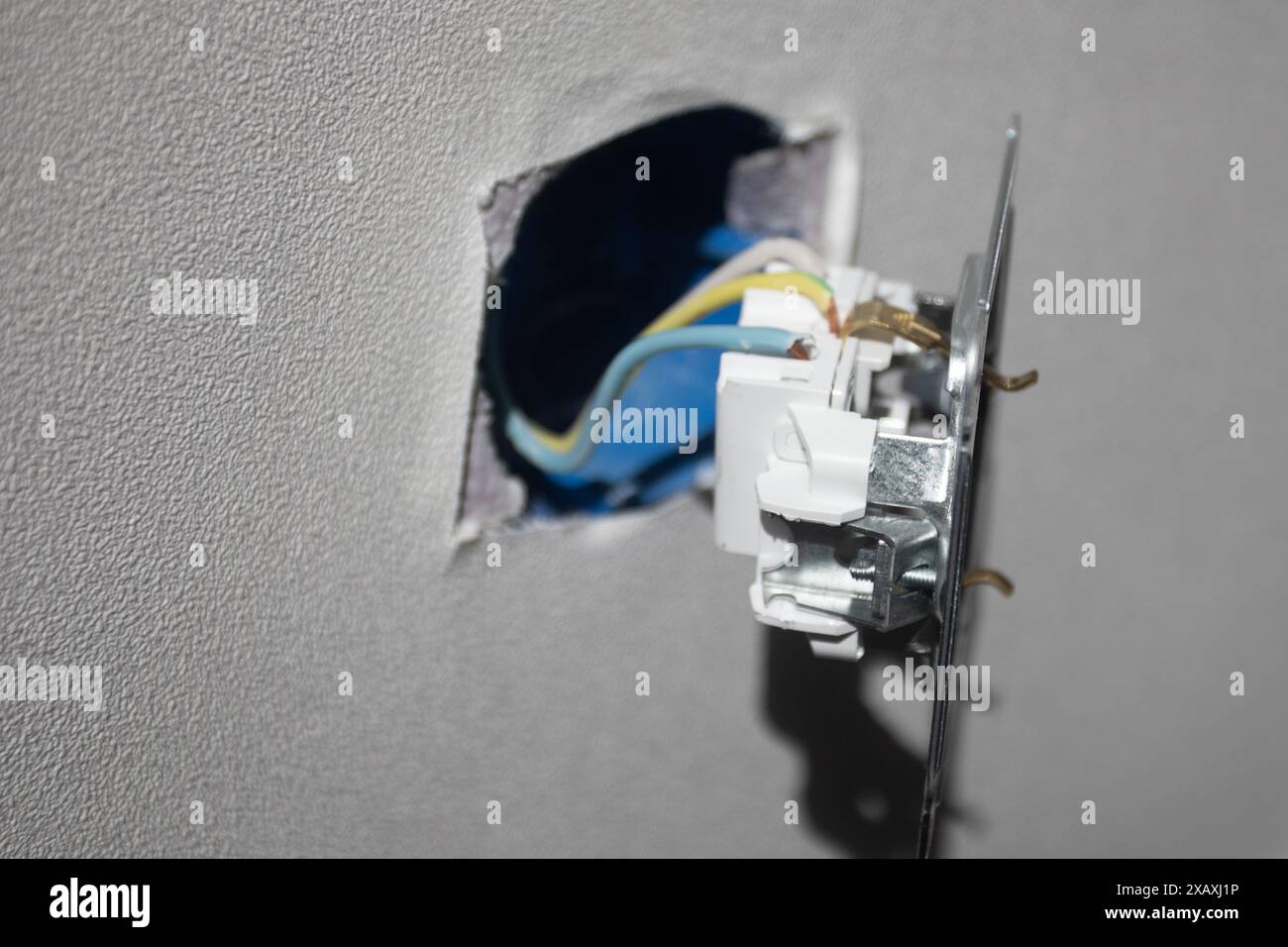 Broken electric socket torn from white wall Stock Photo - Alamy