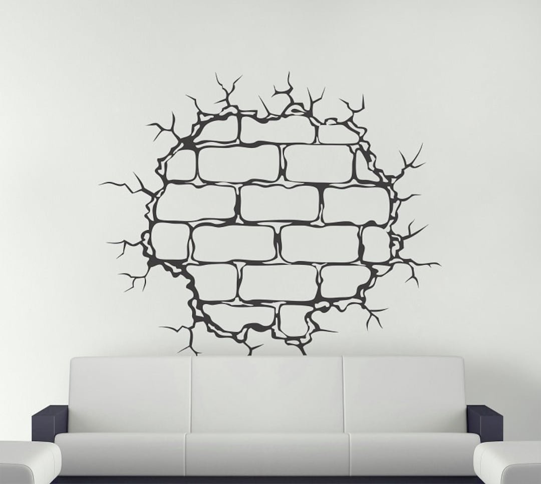 Wall Decal Brick Wall Crack Hole Pattern Decor Destruction Vinyl Decal ...