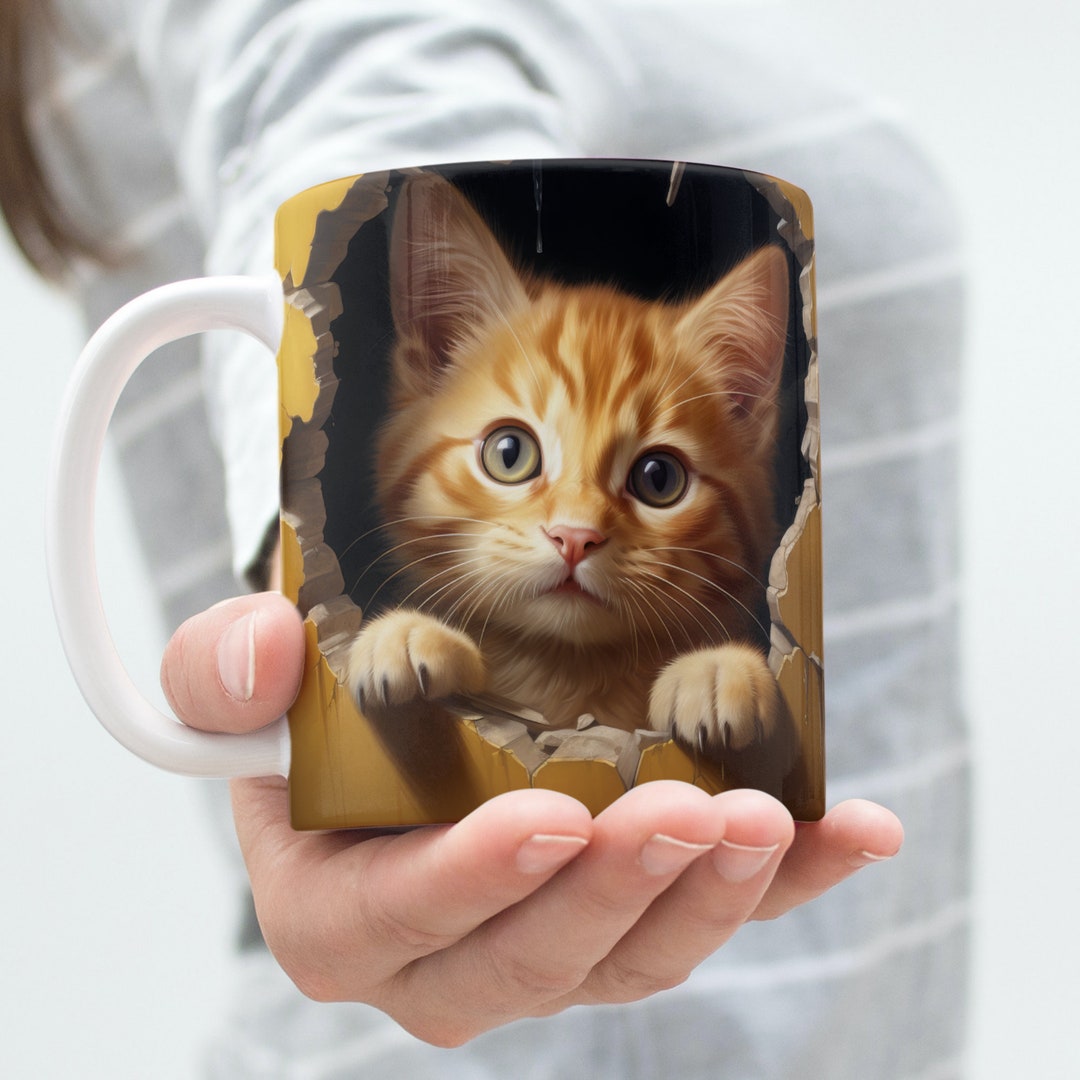 3D Cracked Wall Sticker, Kitty Mug Sublimation Png, 3D Mug Template ...