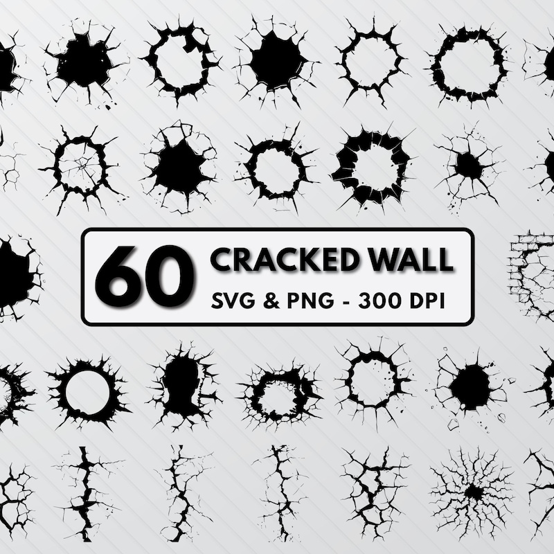 Cracked Wall Decal, Bullet Hole, Rock Chip Decal, Broken Glass Wall Art ...