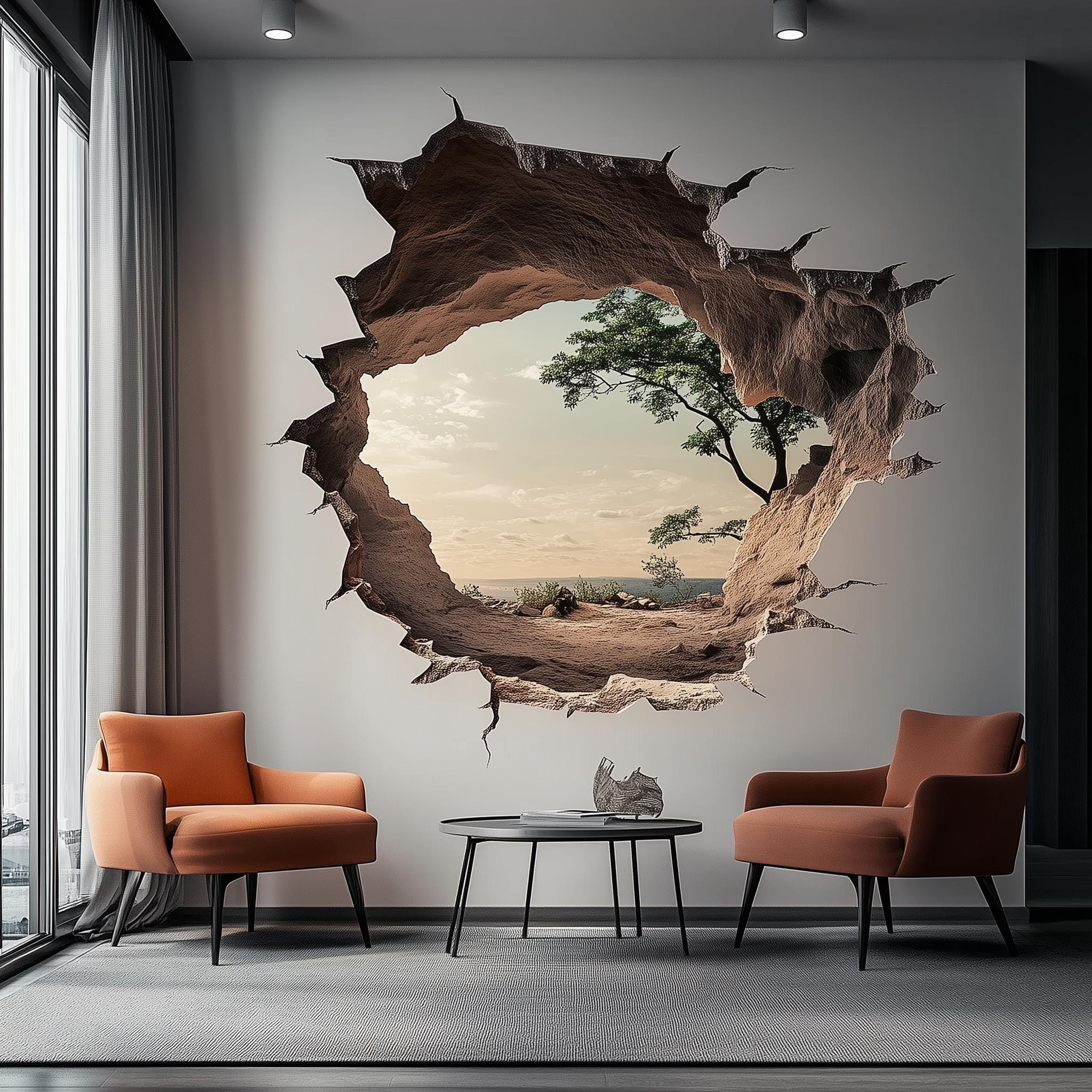 3D Cracked Wall Decal | Realistic Nature View Wall Sticker | Optical ...