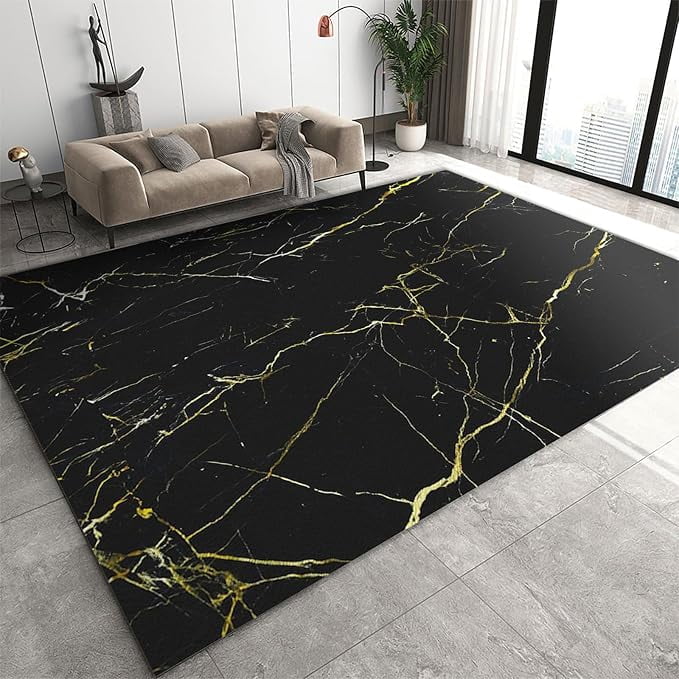 Black Gold Marble Area Rug, Abstract Gold Crack Art Home Decor Rugs ...