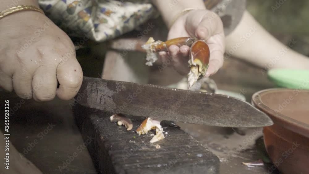 Indian Woman Removing The Meat From A Crab Leg By Cracking Its Shell ...