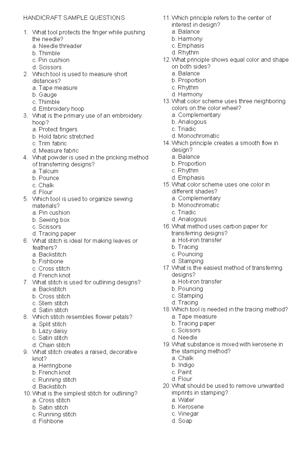 Handicraft Sample Questions key - HANDICRAFT SAMPLE QUESTIONS What tool ...