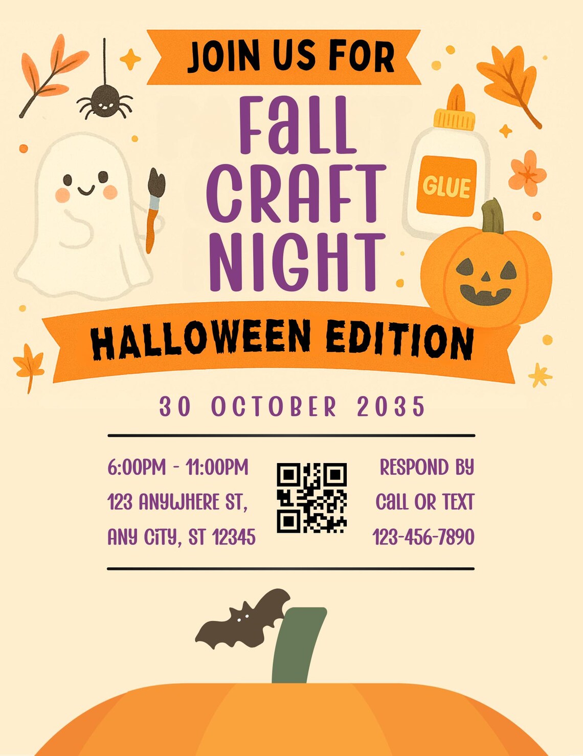 Fall Craft Night Canva Invitation Template: Halloween Pumpkin Painting ...