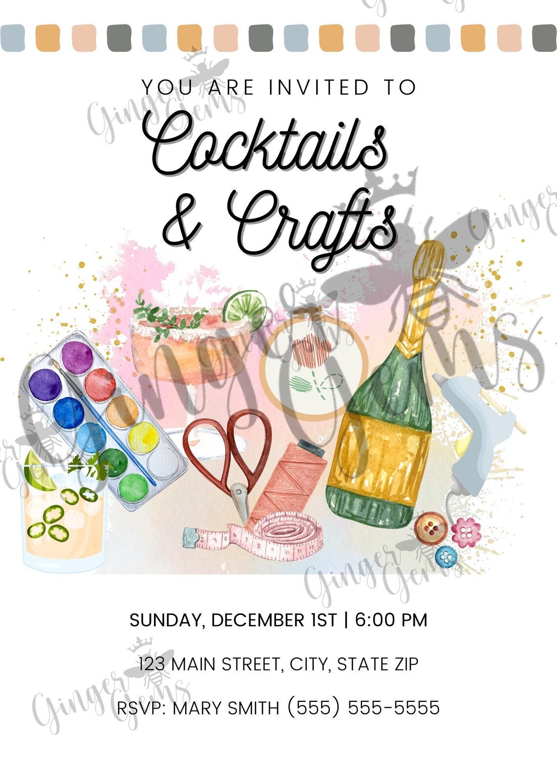 Cocktails & Crafts Party Invitation Template, Gathering Party, Girls ...