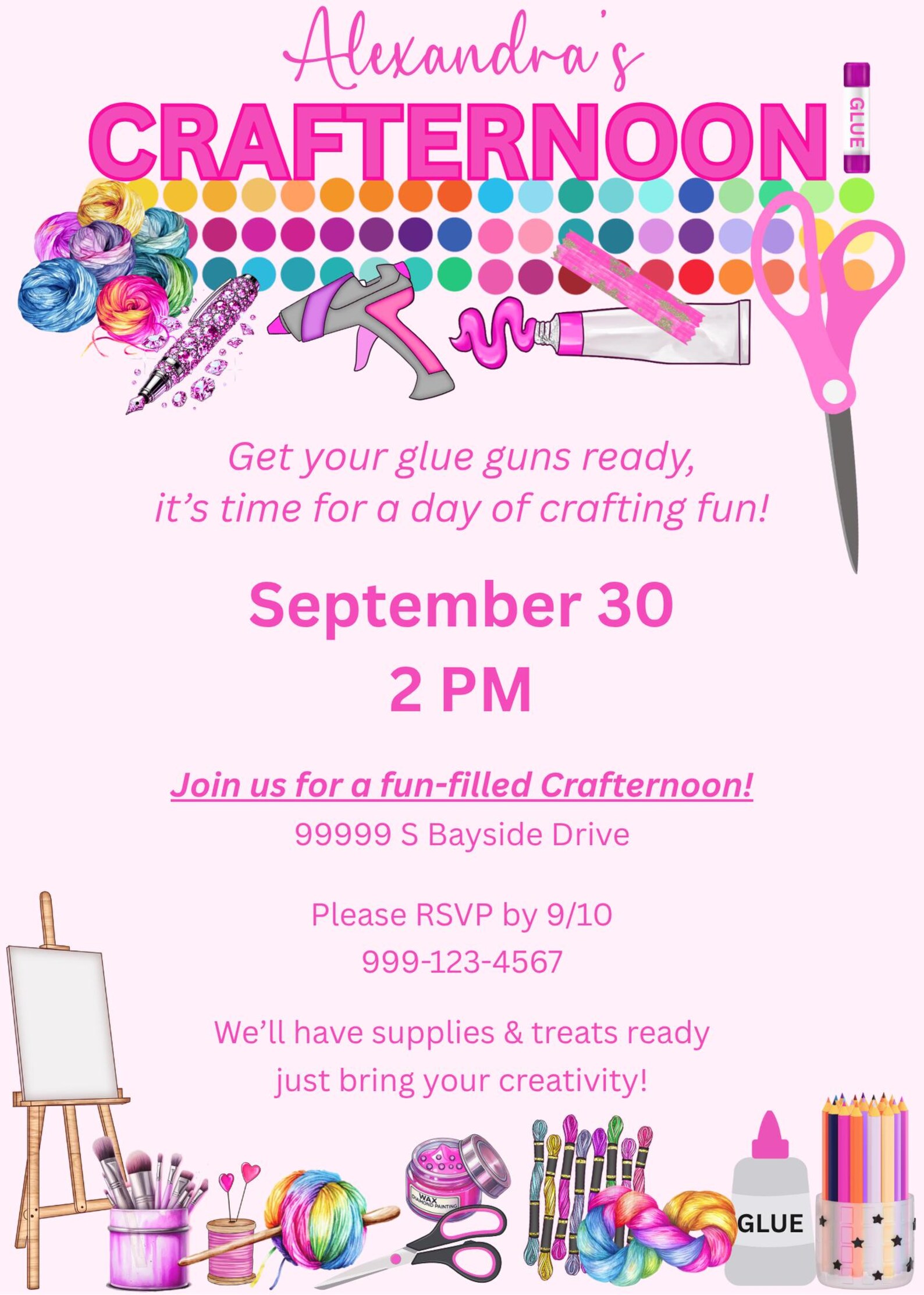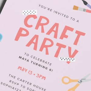 Craft Party Invitation for a Girl | Crafting Party | DIY Party ...