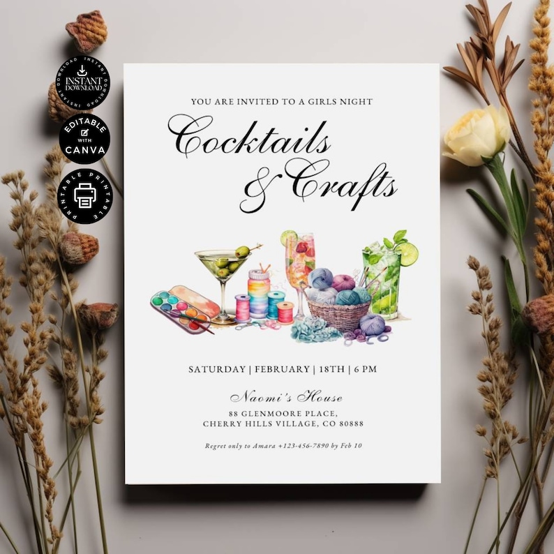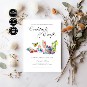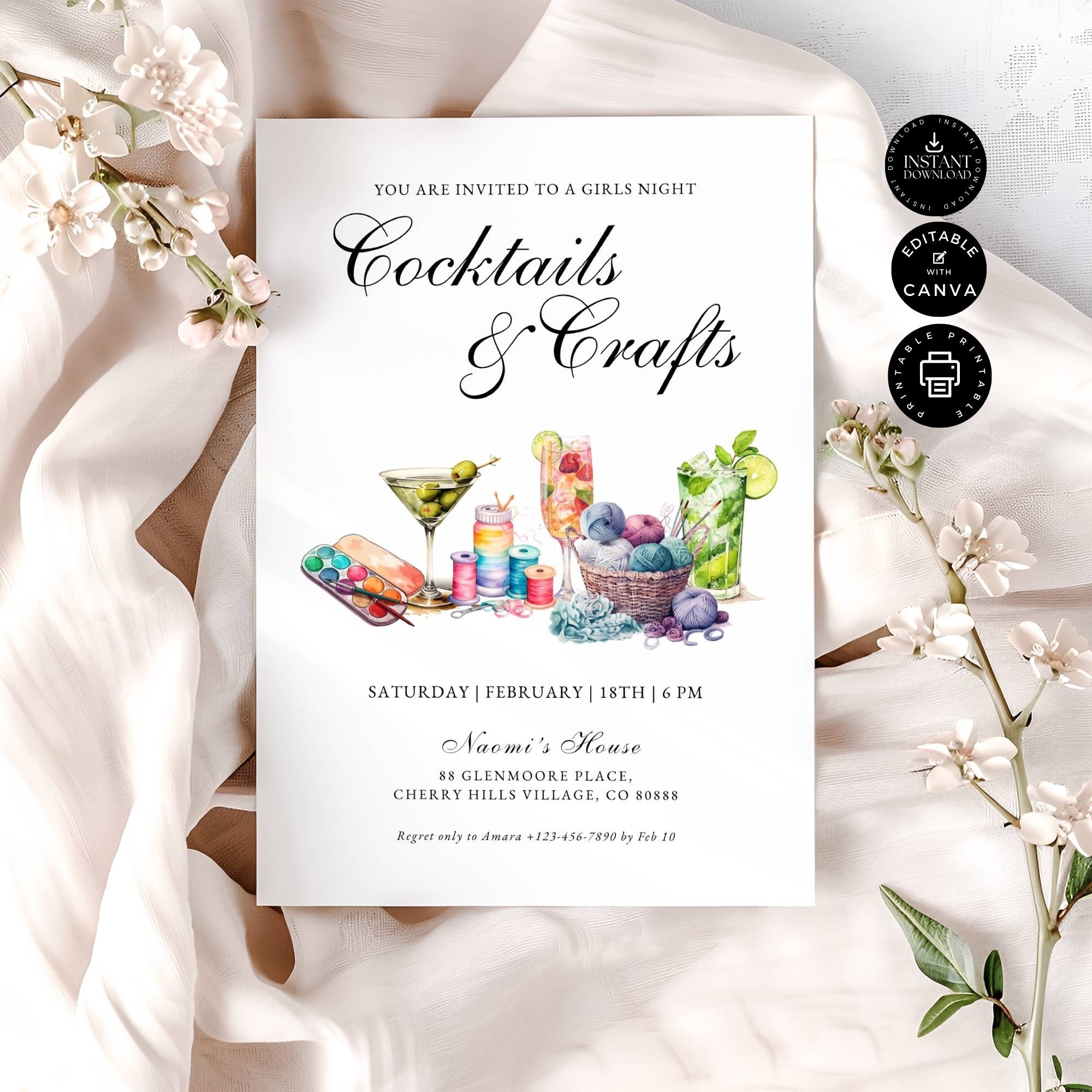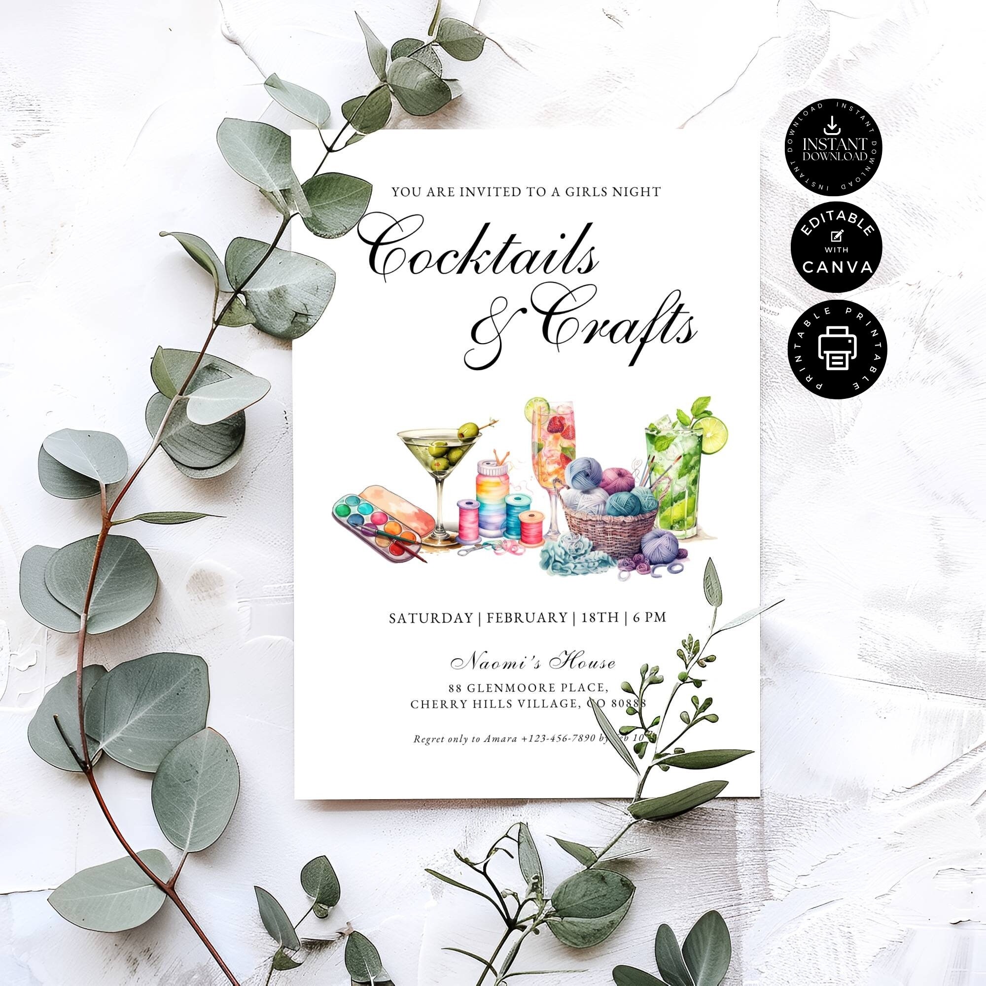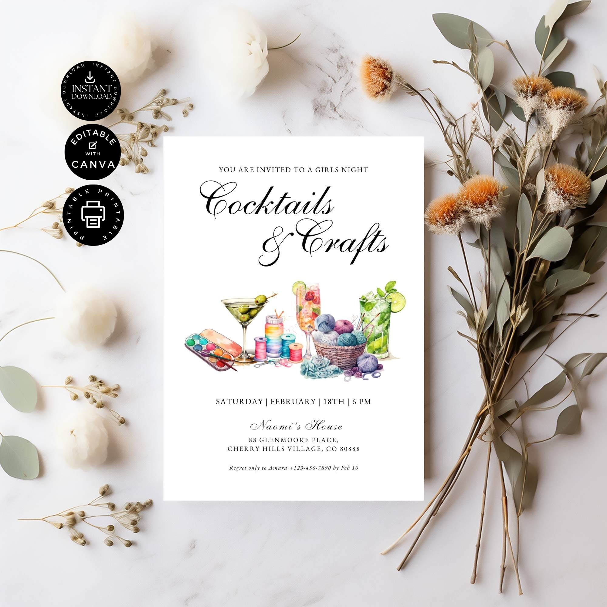 Cocktails & Craft Party Invitation Template, Girls Night Invite Card ...