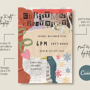 Christmas Craft Night Invitation Template, Holiday Pajama Party Invite ...