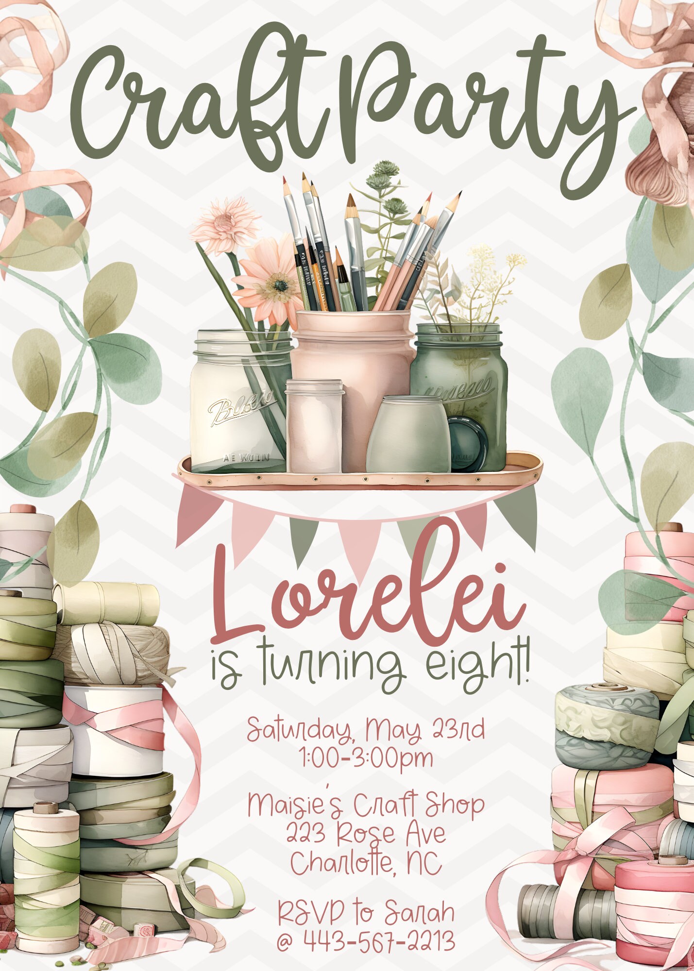 CRAFTY Birthday INVITE - Craft party - Craft Birthday Party - Crafting ...