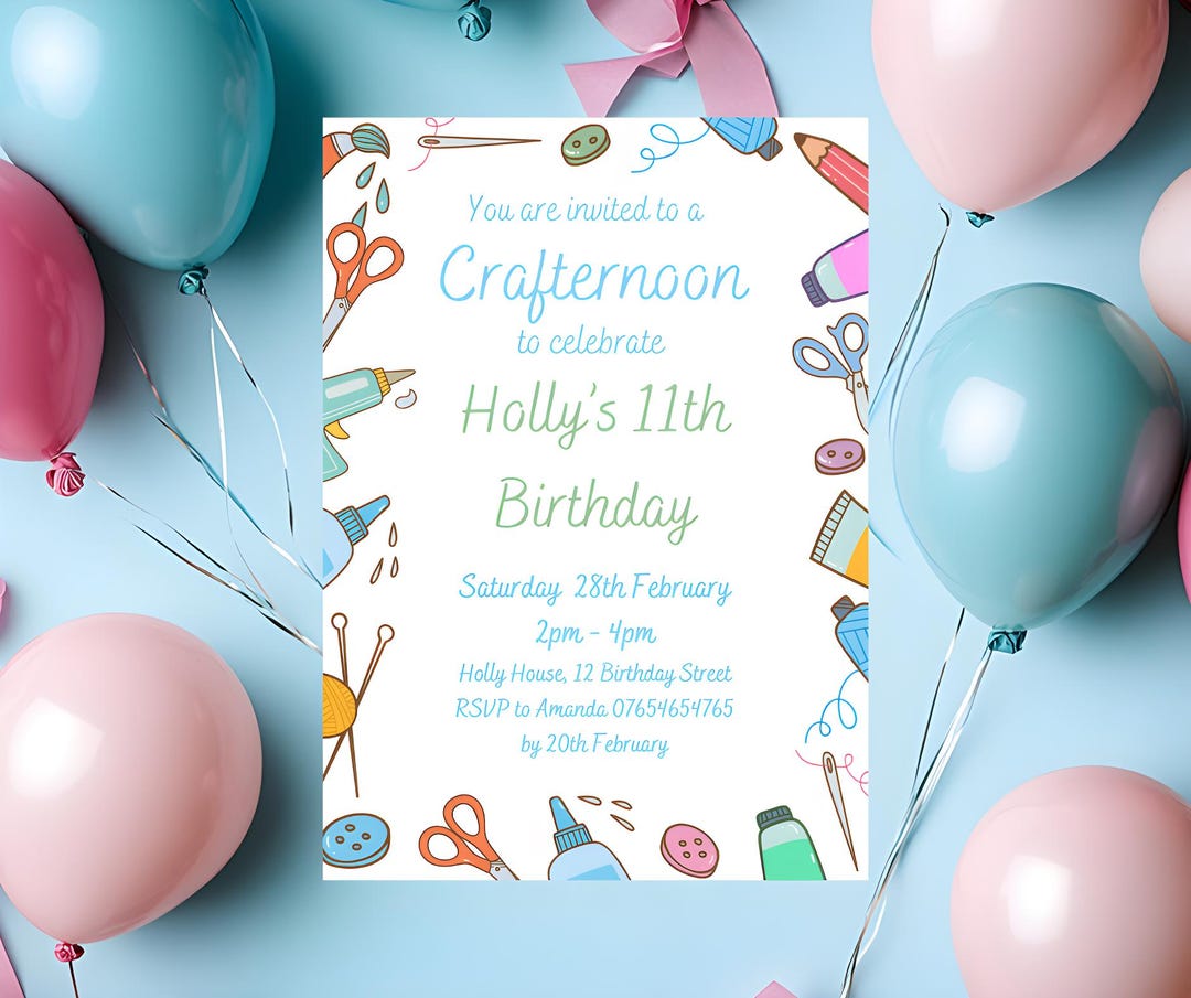 Craft Birthday Party Invitation With Photo Editable Template, Art and ...