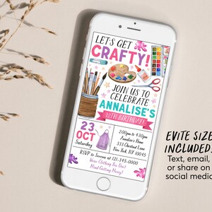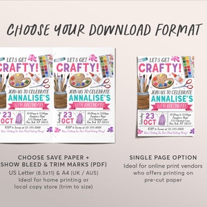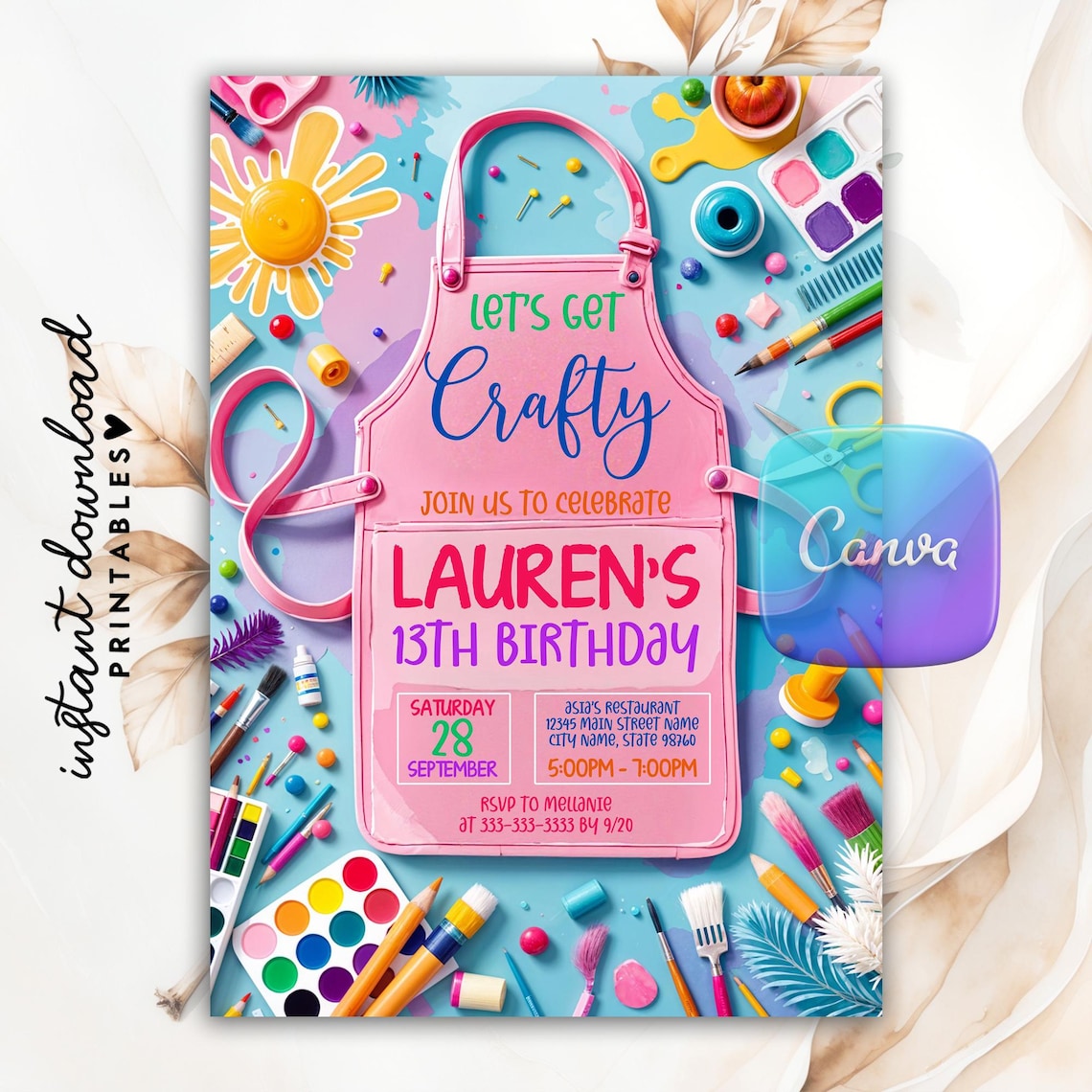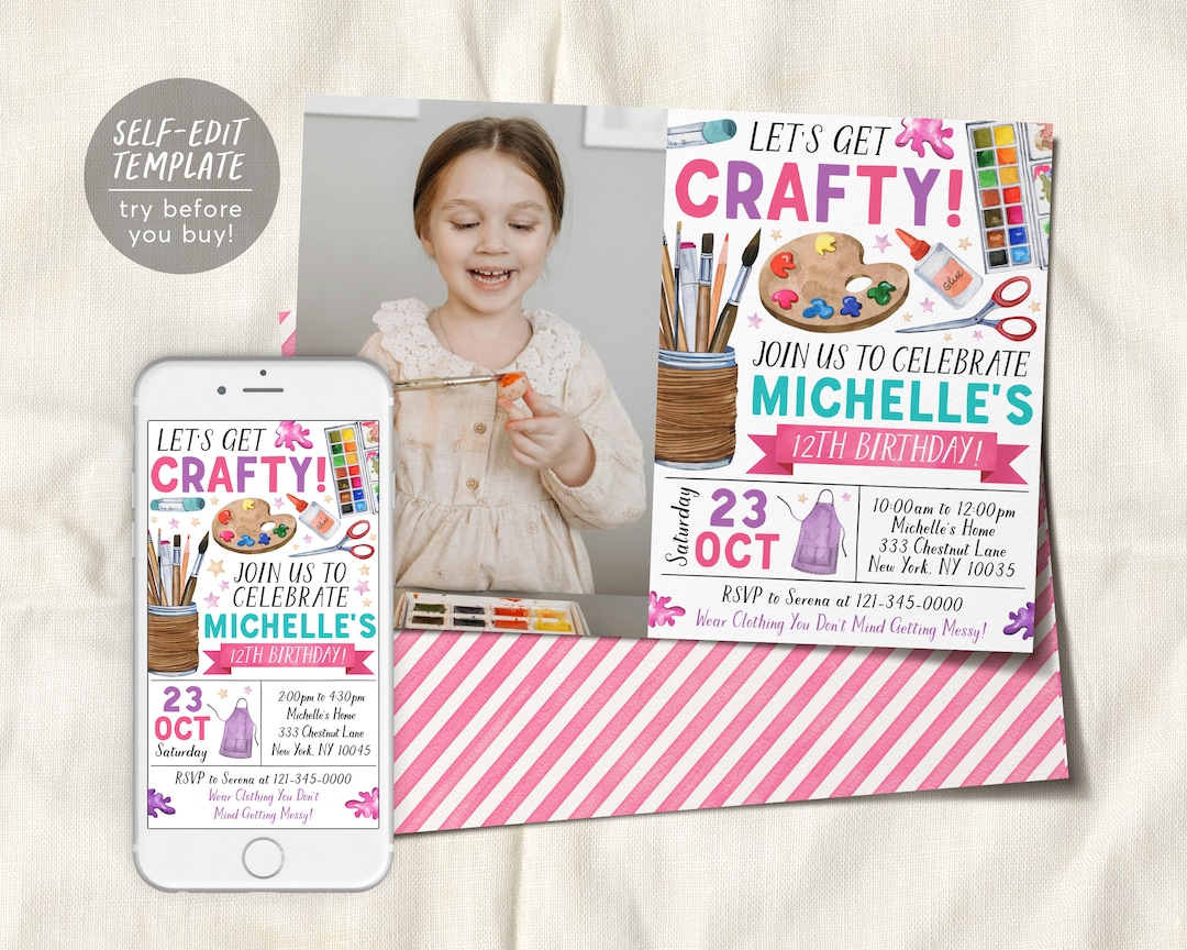 Editable Girls Craft Party Invitation | Arts & Crafts Birthday Invite ...