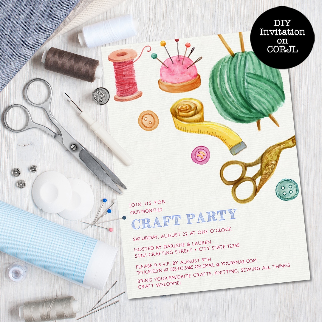 Sewing Craft Party Invitation: Editable Printable Invite (corjl File ...