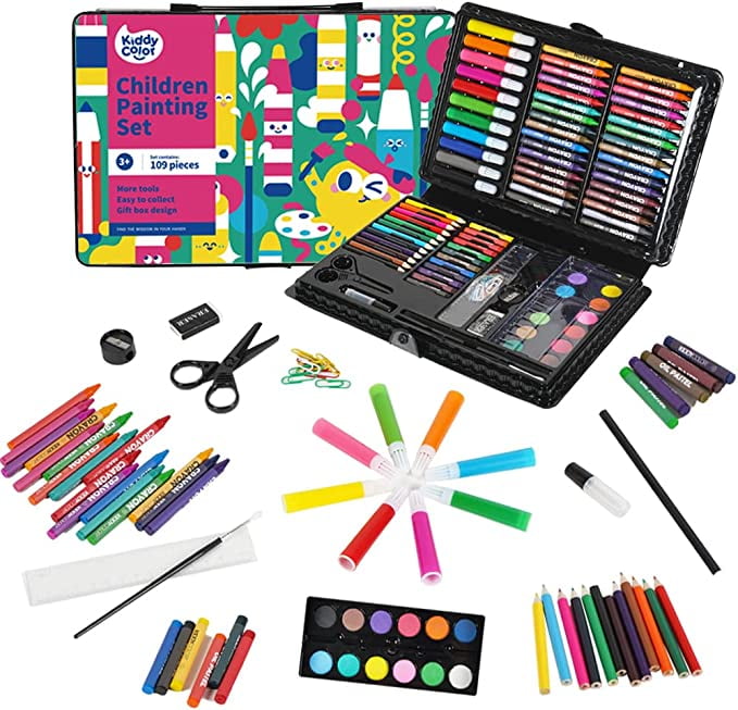 KIDDYCOLOR 109 Piece Deluxe Art Creativity Set Arts and Crafts Kit for ...