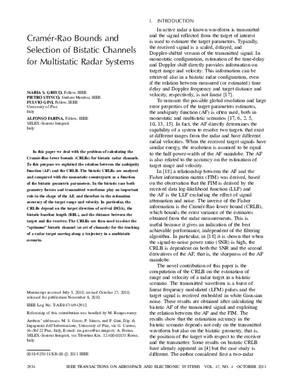 (PDF) Cramer-Rao Bounds and Selection of Bistatic Channels for ...