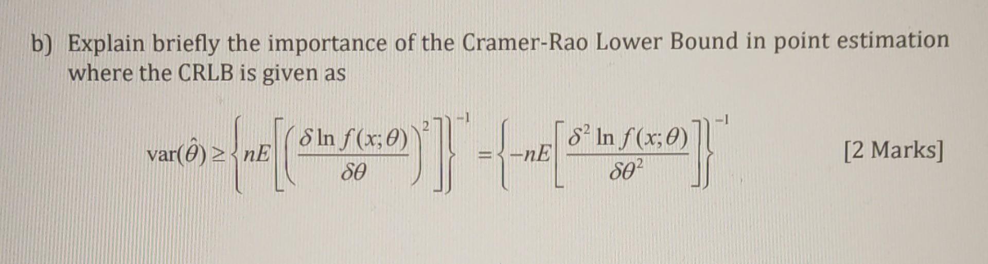 Solved b) Explain briefly the importance of the Cramer-Rao | Chegg.com
