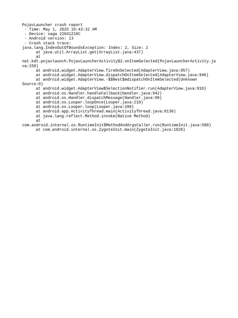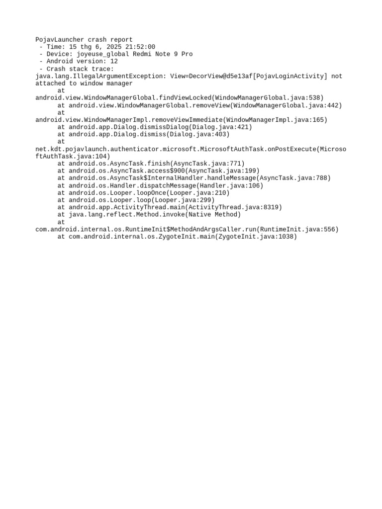 Crash | PDF | Android (Operating System) | Java (Programming Language)