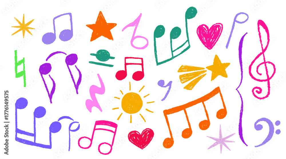 Colorful Musical Notes Hand Drawn with Crayon and Colorful Pencils ...