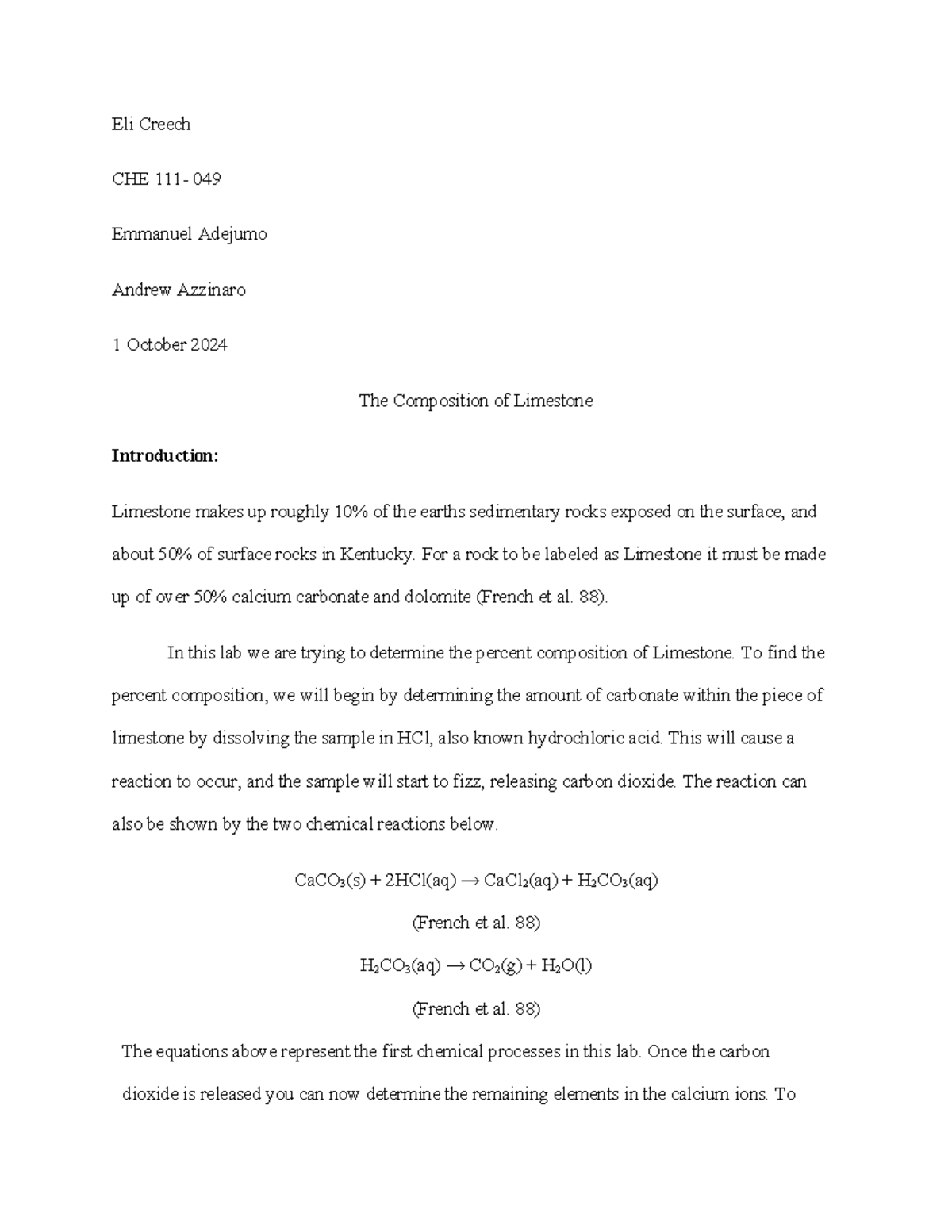 4 Creech Eli - LAb 4 write up - Eli Creech CHE 111- 049 Emmanuel ...