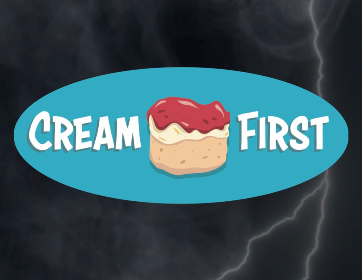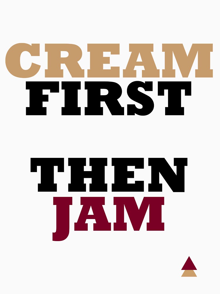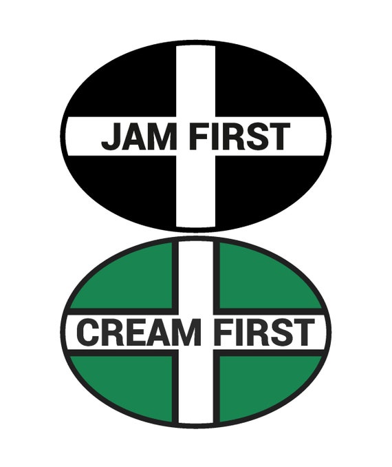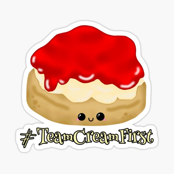 "Cream First - Jam on Top!" Sticker by NessAskew | Redbubble