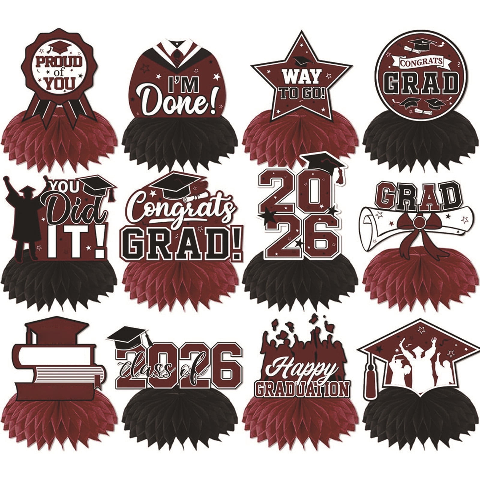 2026 New Graduation Theme Gift Party Honeycomb Centerpieces, Red Black ...