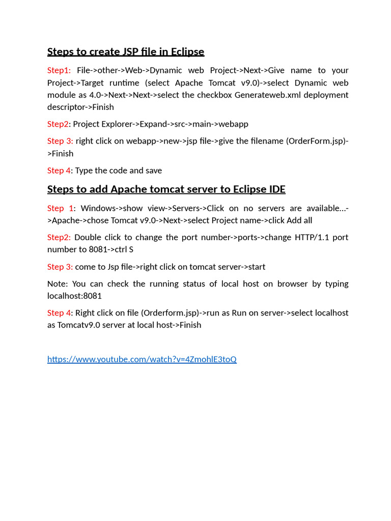 Steps To Create JSP File in Eclipse and Apache | PDF