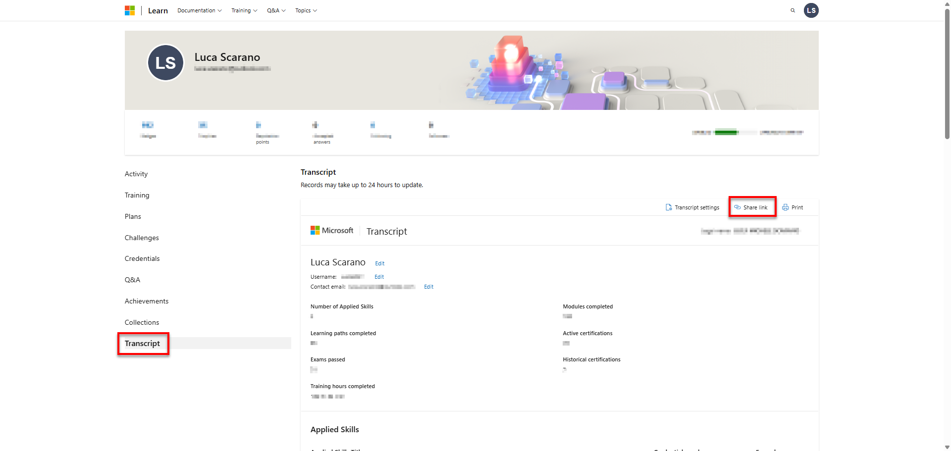 Microsoft Learn Certificate - Transcript