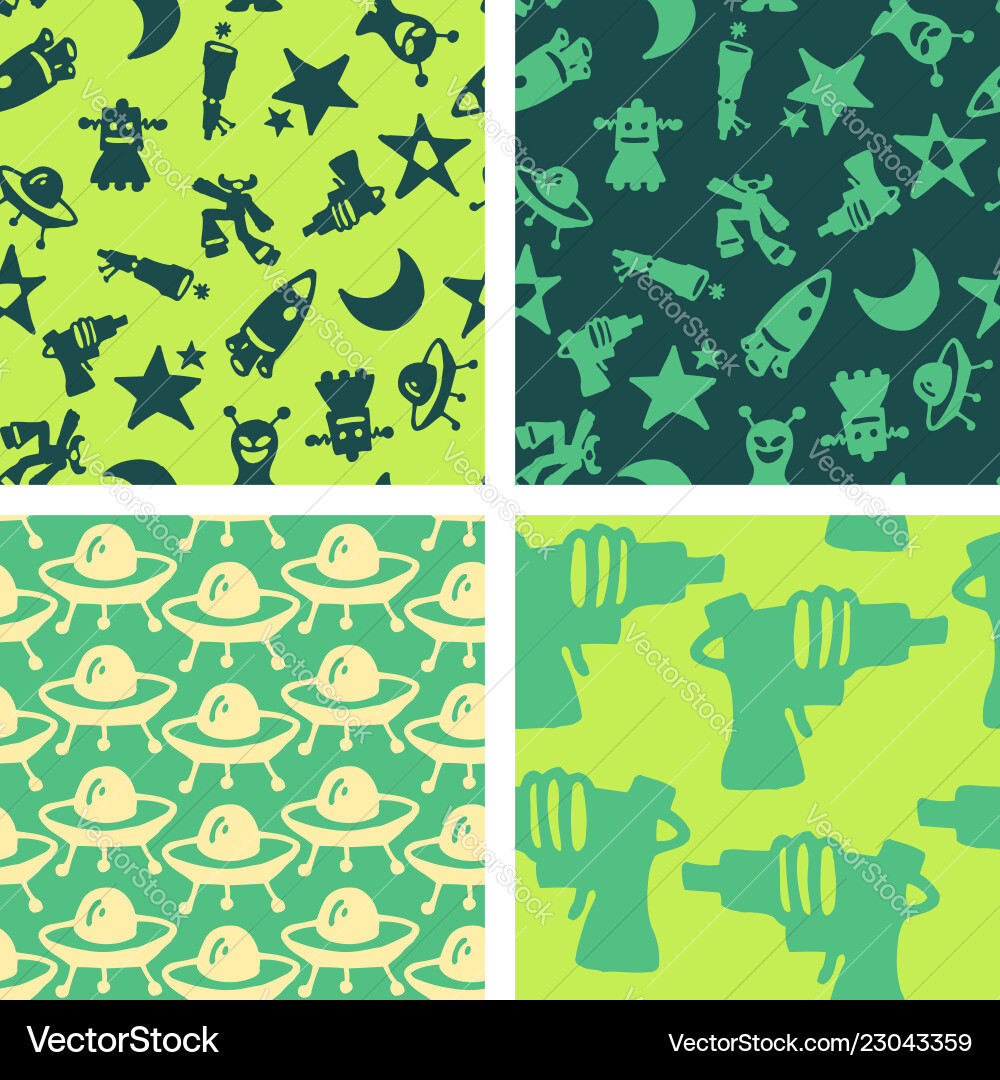 Seamless patterns - hand drawn sf objects Vector Image